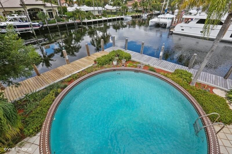 Interior point lot home offers 205 ft. of deep water frontage, ideal for docking large yachts! Featuring wide waterway and large turning basin, quick & easy ocean access with no fixed bridges. Home boasts a sophisticated architectural style with panoramic water views from both levels! Tremendous value! Live in prestigious Seven Isles community. Walk to the beach, Las Olas boutiques, galleries and dining; Seven Isles gate house, 24/7 security. Build new or update existing home.