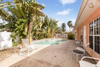 Back on the market. Buyers unable to meet financing expectations. Home has been appraised, inspected AND TITLE WORK IS ALL DONE. Ready to close. It's situated on a large corner lot with paved circular driveway and hard to find 2 car garage. Open floor plan leads to a private patio and pool area. Sought after location is minutes away from beaches, shopping, restaurants, malls and new state of the art fitness center. Two masters makes it ideal for Airb&b or live in it. See it today.