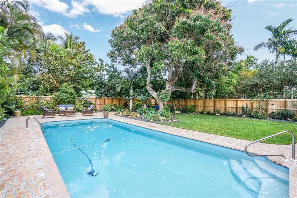 MID CENTURY BEAUTY in VICTORIA PARK w/ CURVED BRICK WALL in LIVING ROOM & TERRAZZO FLOORS THRU-OUT. UPDATES IN 2016: NEW IMPACT WINDOWS & DOORS, ELECTRICAL WIRING & PANEL BOXES, NEW S- TILE ROOF w/ STRAPS, BOTH BATHS REMODELED, NEW OPEN KITCHEN w/ BREAKFAST BAR & ESPRESSO TONE CABINETRY, WHITE QUATRZ COUNTERTOPS & TOP OF THE LINE APPLIANCES, NEW LANDSCAPING FRONT & REAR, 35X15 POOL RE-MARCITED, NEW ALL LED LIGHTING, NEW FENCE, NEW AC DUCT WORK & GUTTERS. OFFICE OFF KITCHEN COULD BE 3rd BEDROOM.