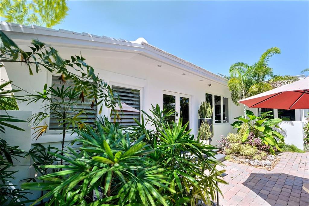 Downtown living walking distance to restaurants, shops, night life, the water taxi & the beach! This private compound has been exquisitely updated while maintaining the classic charm of its original design. 2BR/2FBA in the main house & 1BR/1FBA in the guest house with a sep. entry, patio area & parking. A lrg bright great rm with a vaulted wood beamed ceiling, curved walls, detailed moldings, newer impact windows & doors, roof, tankless gas hot water heater, a/c & more. Sq ft from BCPA believed accurate.