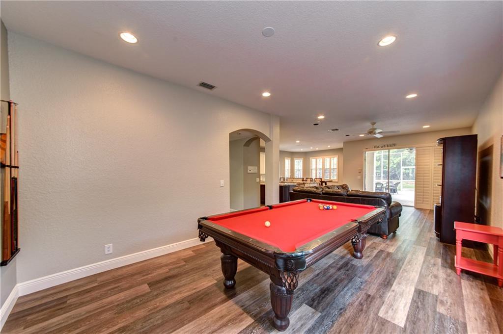 This Beautifully Updated Home is Fresh & Crisp! Breathtaking New White Kitchen with a Dark Contrasting Island, High End 2" Mitered Edge Granite Tops, Stainless Steel Farmers Sink, Subway Tile Backsplash, SS Appliances & Beverage Cooler! The New Flooring Throughout the Home is a "New Green Technology with Zero Emissions, is Waterproof with Cork Underlayment & Made in the USA. Huge Screened in Porch & Pool Area! Newer A/Cs, Washer/Dryer, New Paint inside/out! Backs up to a Serene Preserve! Guard Gated!