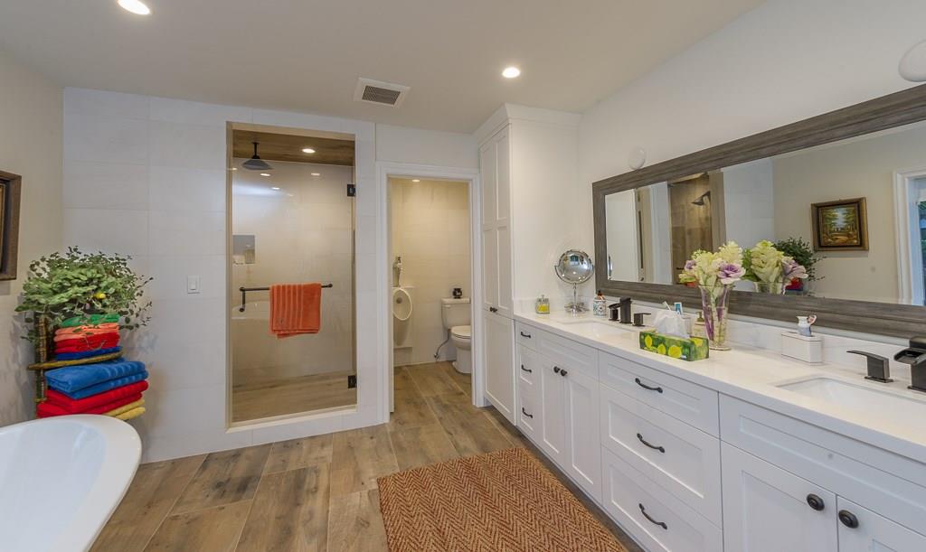 French country inspired renovation with newly constructed addition. Custom designed split floor plan offers three bedrooms, 3 full baths and a half, with 2 car garage & pool. Extensive list of custom features that compliment this stunning home. Designed with privacy and serenity in mind, the flowing floor plan showcases the high end finishes and exquisitely designed kitchen and master, opens to the covered loggia & pool. Lushly landscaped over sized fenced lot with custom lighting and mature trees.