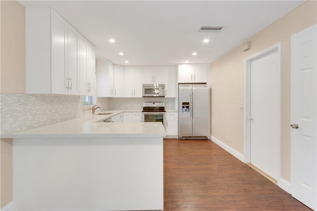 Beautifully remodeled 2/2 home in the heart of Palm-Aire! New from the bottom up, sitting on a 6,900 sqft lot. New shingle roof (2017), new kitchen, bathrooms, and wood floors throughout the home. Freshly painted inside & out. Kitchen features custom cabinetry with quartz counter-tops, and brand new MAYTAG S/S appliances! Relax in your screened-in patio while enjoying the spacious backyard & canal view. New landscaping throughout giving this home magnificent curb appeal. Hurry, this home won't last long!