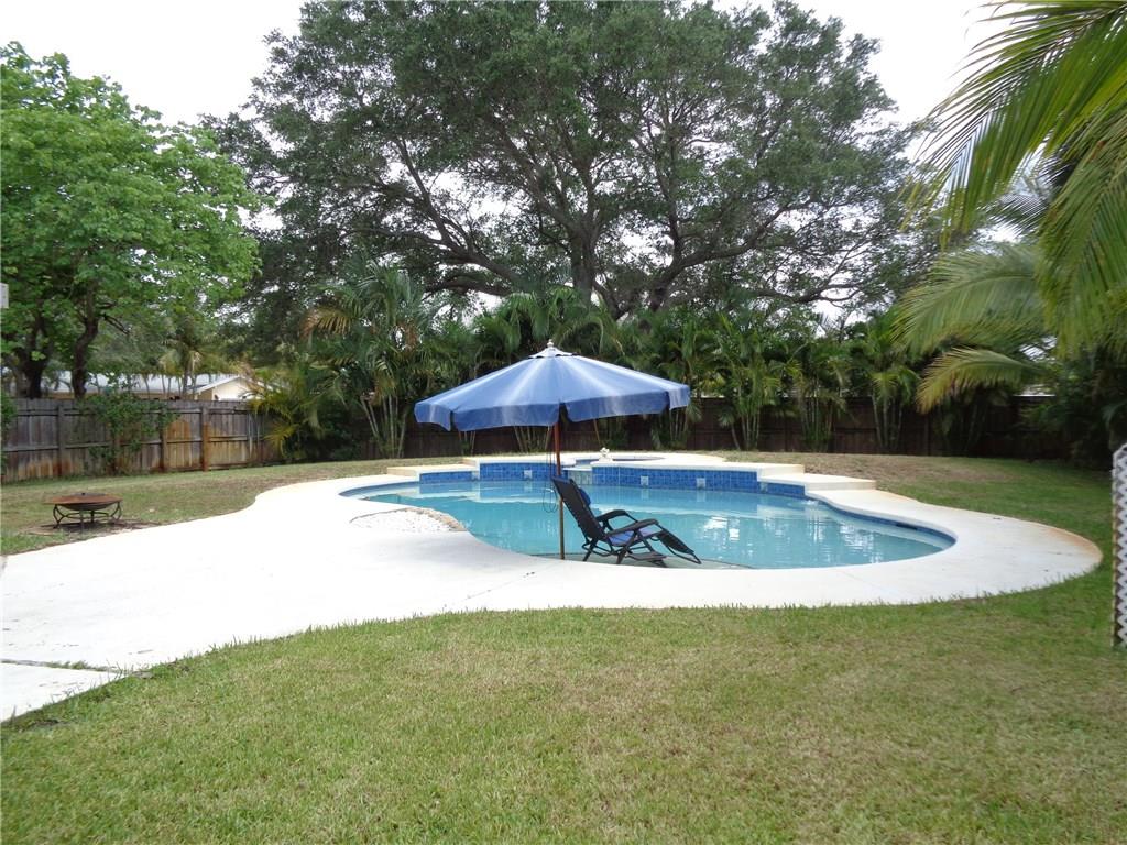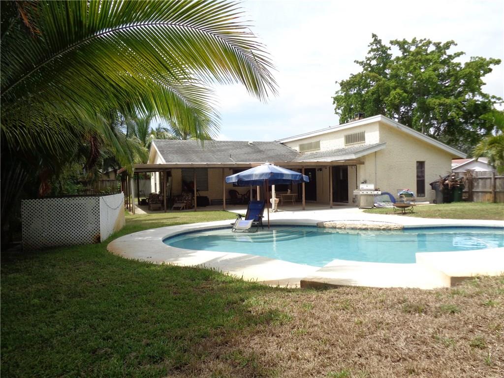 Charming California Style 3/2 home on CORNER, OVERSIZED, CUL-DE-SAC LOT in Palm-Aire Village. Lovely covered patio leading to open 18x36 heated & cooled, saltwater Pool & Spa! Home features a split bedroom plan. Sunken living room with beautiful fireplace and custom stone wall. Crown molding. Kitchen is open to living area. Impact Glass on front window & door. Garage door & side garage door is Hurricane proof! Roof replaced in 2005. A/C replaced with 5 ton unit. Great location between Turnpike & 95.