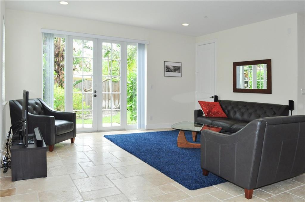 Spacious Tri-level townhome built in 2011. Features stainless steel, granite, backsplash, recessed lighting, travertine floors, impact windows, his & her closets and jetted spa tub in master. Multiple sets of French doors throughout. Jack & Jill bathroom. Open loft with full bath on 3rd floor leads out to an oversized terrace with a great view overlooking private fenced-in back yard. Space to add a pool. Mins to airport. Walking distance to shopping, dining and entertainment. Just minutes from the beach.