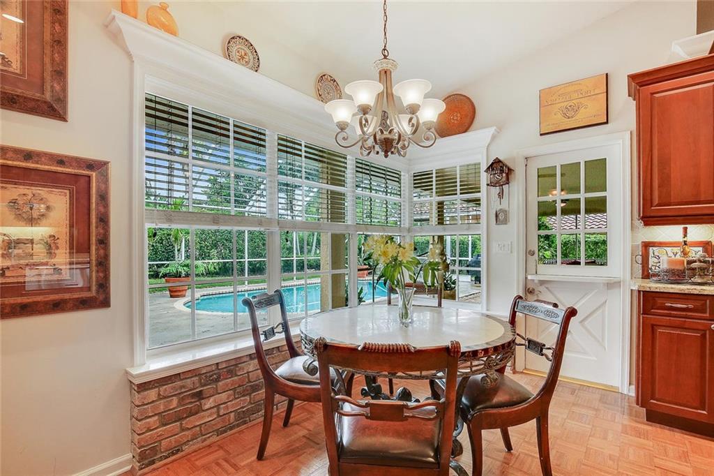 Truly a one of a kind home offering northern charm in an ideal South Florida setting. Home offers Chicago brick facade, a complete kitchen renovation with top of the line appliances, dual zone AC,wood parquet flooring throughout, screened in heated pool area with large covered patio, and a huge master suite and large cabana bath with dual sinks and shower, roof replaced in '07. Owner added granite topped bar area for entertainment. Community offers mature trees and landscape providing a great atmosphere.