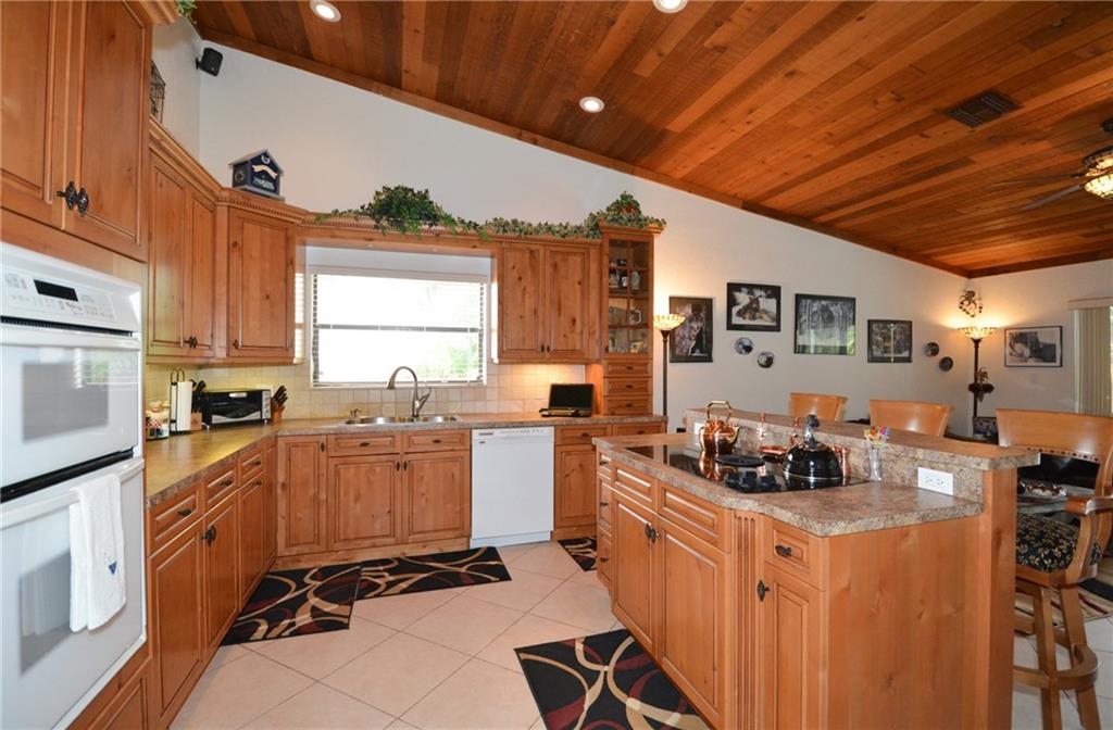 Wowza! Boca Rio Beauty! Lots of house for the money in this sprawling home with soaring cedar ceilings, custom kitchen with real-wood cabinetry, cooking island and pantry that overlooks family room and screened-in lanai with large pool, new diamond-bright, paved patio and hot tub. Generous room sizes (one bedroom is an open Den), fireplace and expansive master suite with newly-tiled shower and walk-in closet. Two new a/c systems, hurricane protection and utility room. No HOA and superb location!