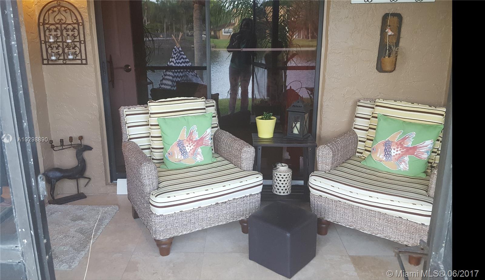3/2 Corner unit, one story Townhouse in a gated community located in the Jacaranda area of Plantation. This home is meticulously kept. Updated kitchen and top of the line S/S appliances, title throughout; Master bedroom has a large walk-in closet; covered patio with large storage area and with a great view of the lake. Will not last long! Call or text Shalonda (954)479-6881 to schedule a showing.