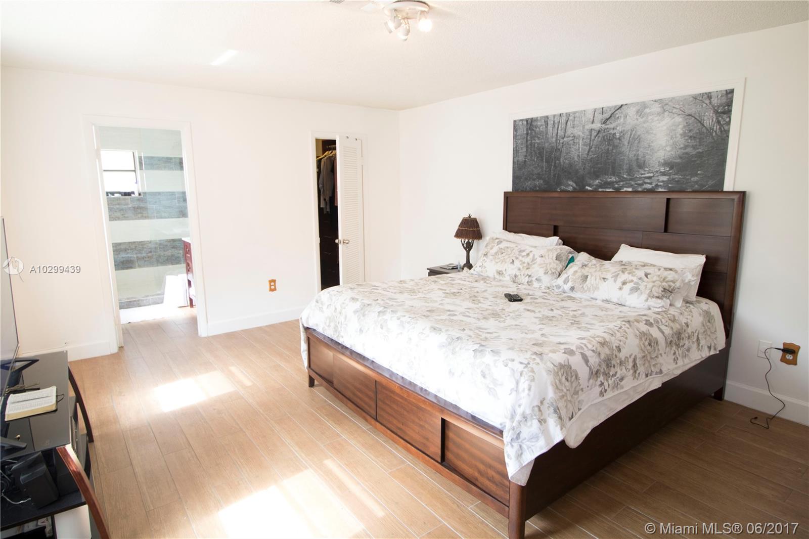 Impeccably remodeled & charming 3/3 in Doral Oaks. Inviting covered patio space welcomes you home. Rich wood-look tile floors compliment updated kitchen with breakfast nook & Electrolux stainless appliances. Spacious open living & dining area plus a full bedroom with en suite downstairs. Pamper yourself upstairs in the large master with deep walk-in and stunning bath. Bedroom 3 upstairs features private en suite bath, all the rooms feel like masters in this wonderful home! This one is going, going, gone!