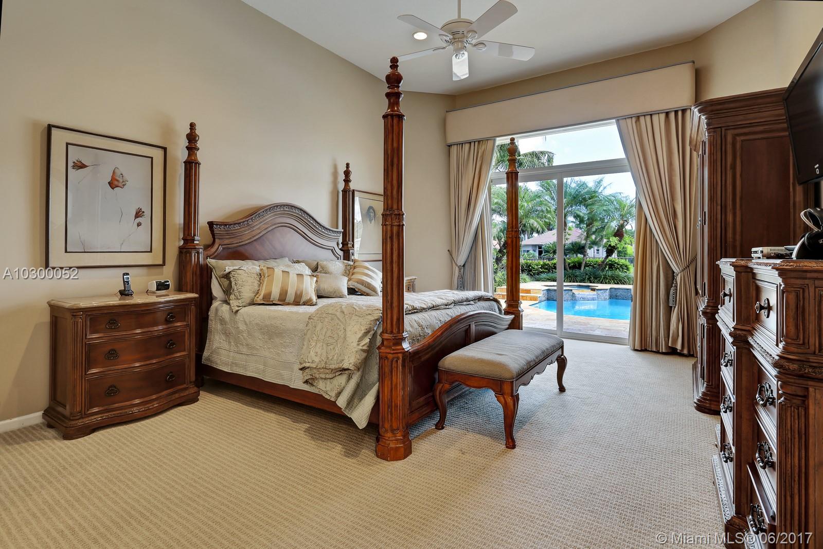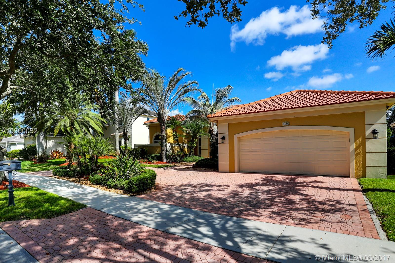 Lakefront custom built Greenwich model, almost 3000' sq. of luxurious and upgraded living area w. 4BR, 3FBA + Den. Crema Marfil marble floors throughout the social areas. Gourmet kitchen features custom Quartzite countertops (Blue Louise), 42” wood cabinets, under-cabinet lighting, stainless steel appliances, including Sub-Zero refrigerator/freezer, KitchenAid double oven & microwave, warming drawer & dishwasher. Impact glass front & rear doors and windows, accordions shutters on the sides. Tiled roof & gutters installed in 2007. Gold travertine pool deck & recently resurfaced saline chlorinated pool & spa with waterfall feature. Fully maintained dual zone, multi-speed 18.5 Seer A/C units. Hybrid wired and wireless security system with 2 remotes and digital dialer. Lake fed irrigation.