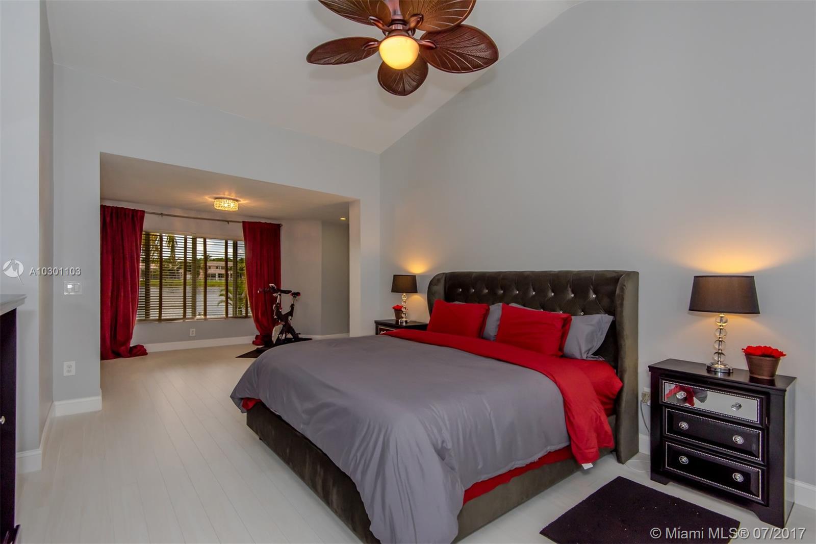 Beautifully remolded single story home in Bristol Isle with one of the best lake views. This 3 bedroom 2 bath home has according shutters, stamped concrete drive way, tiled back yard patio area, large master bedroom with siting area expanded and permitted, and new light fixtures, including chandeliers included. Exterior surveillance cameras and monitoring equipment also included. All bath rooms and kitchen were upgraded and nicely tiled. Garage has a separate work area. Stainless Steal appliances, brand new A/C, plus much more. Don't miss this opportunity to own this gem of a home.