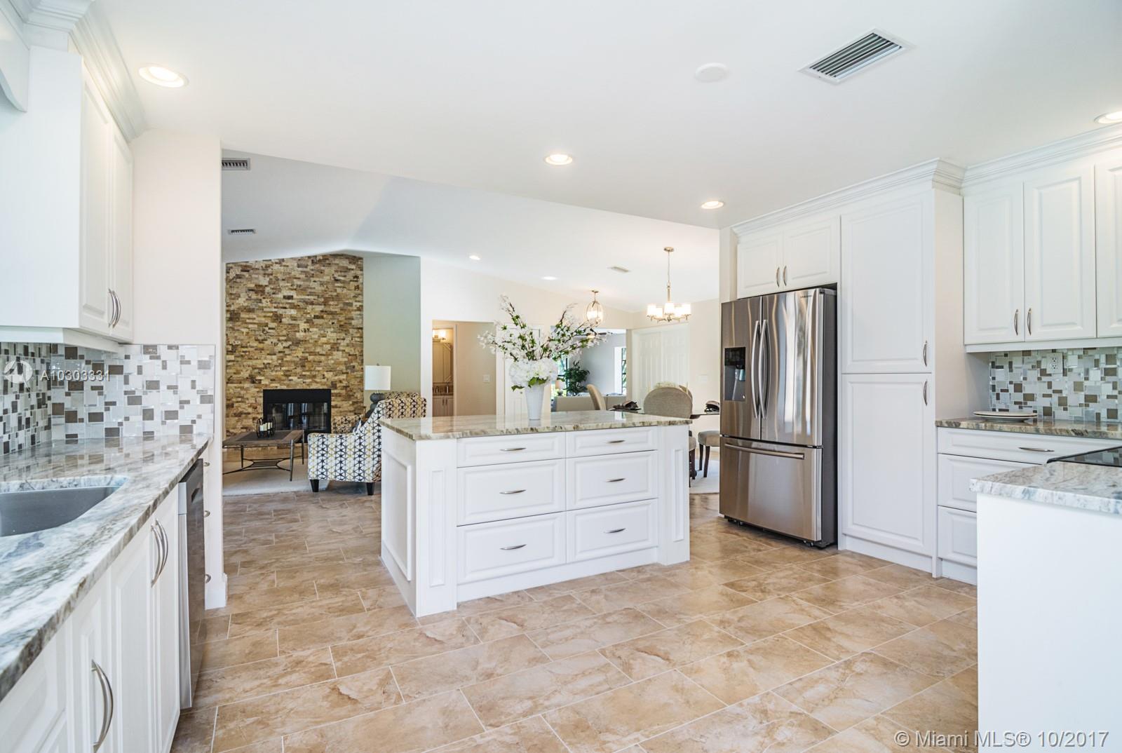 Beyond your wildest dreams!!! This beautifully updated home, with close to 2,700 sq. ft. LA, boasts a magnificent open floor plan, tasteful finishes throughout, and unobstructed serene lake and pool views. It features a custom kitchen and bathroom cabinets, quartzite countertops, glass mosaic backsplash and brand new SS appliances, newer roof, newly refinished pool, porcelain floors throughout common areas, new doors and fixtures and so much more. Perfect entertaining space in the enormous living room with fireplace, dining and eat-in kitchen, plus an oversized den/media room with stunning bay windows and ample parking that includes a large circular driveway and 2 car garage.