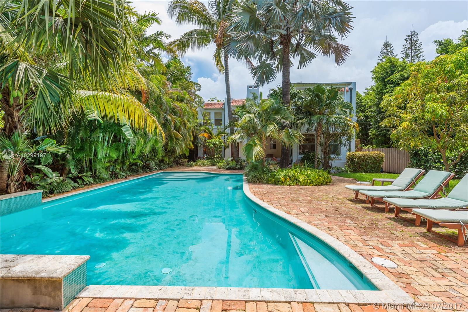 Be enchanted by this 1930 historically significant estate. Property sits on massive, lushly landscaped lot of 12,220 sf. The house is 4/4 with 4,215 interior sq ft including a private guest house with 2 car garage capacity, enormous pool w rear private access. Only 3 prior proud owners ever, tastefully renovated by current owners. Location perfectly situated to get to best of South Beach, Lincoln Rd, 41st and Julia Tuttle. An ambiance of days gone by await in this Oasis on Prairie Avenue.