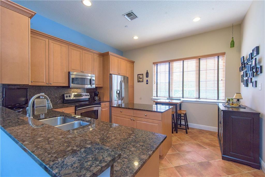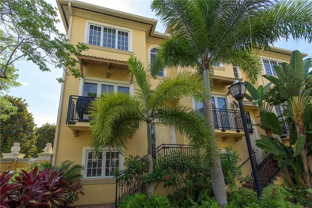 What a find so close to downtown? - Villa Tuscany. Cool interiors with high ceilings, stainless appliances, granite tops, closet built-ins. Ideal corner home has 2 balconies w/ windows on 3 sides creating sunlit living areas. The flexible floor plan has a 2-bay garage with ground level en-suite guest bedroom, open living areas on 2nd with Master & guest suites on top floor. Gated boutique complex w/center courtyard heated pool. A/C and Fridge new in 2017. Maintenance covers windstorm insurance.