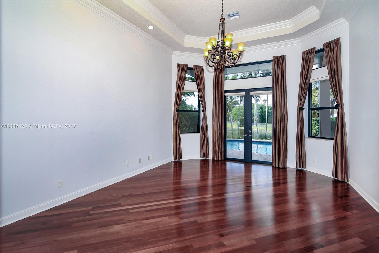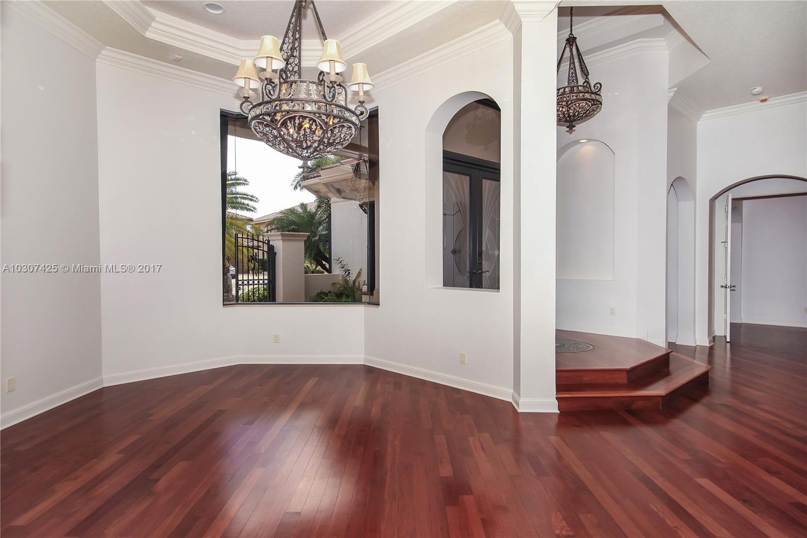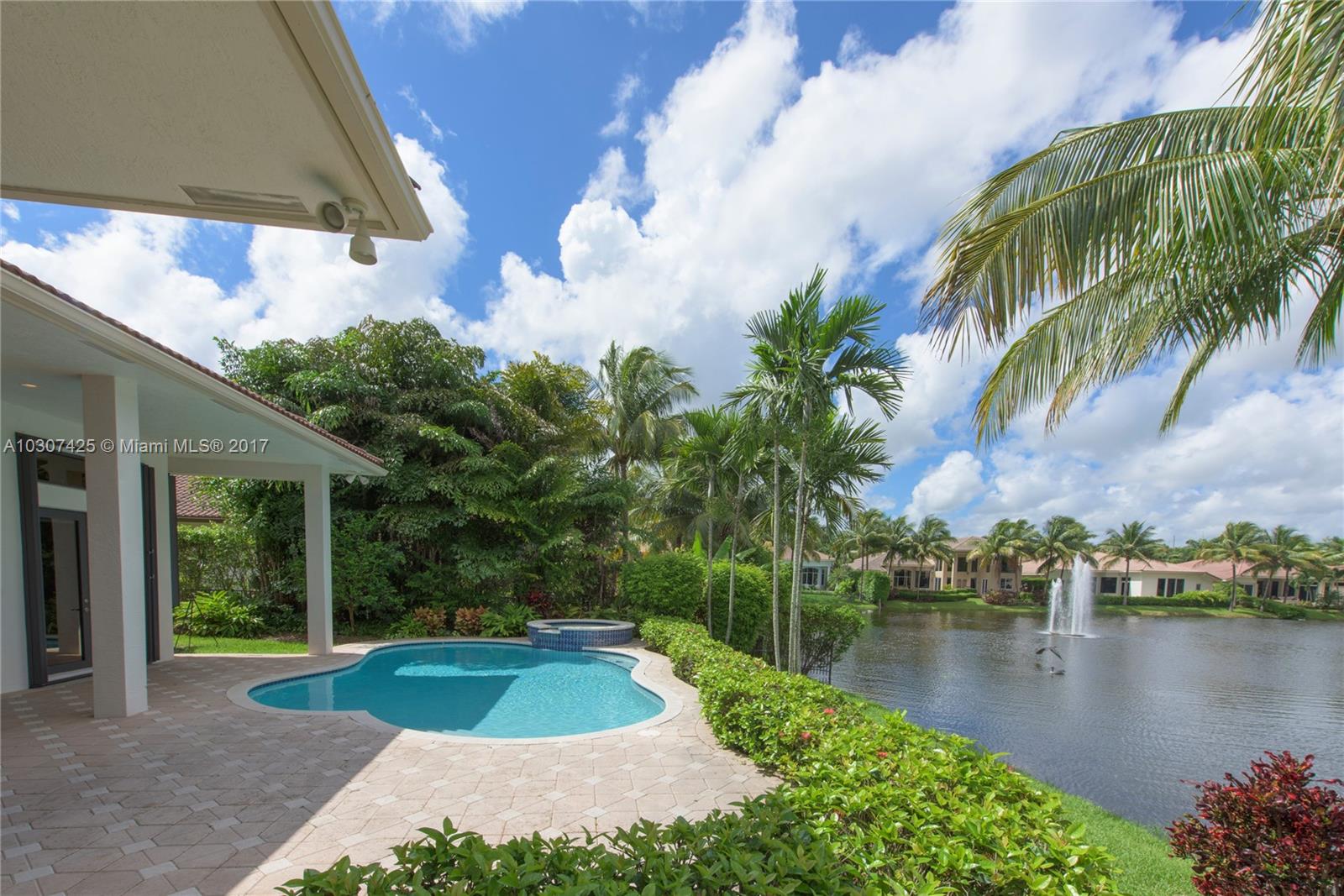 Elegance abounds in this stunning residence that ftures 4bdrms, 3.5bths plus office*Gated courtyard entry opens to stunning double glass doors*Gleaming wood floors are featured throughout all the main living areas, office & master suite*High volume ceilings & large spans of glass make this an open & airy floorplan*Enjoy the chefs kitchen while viewing the beautiful water views & pool*Designer wall unit in library with built in book shelves & double sided desk*Marble master bath, large patio & heatd pool & spa open to water & fountain views.