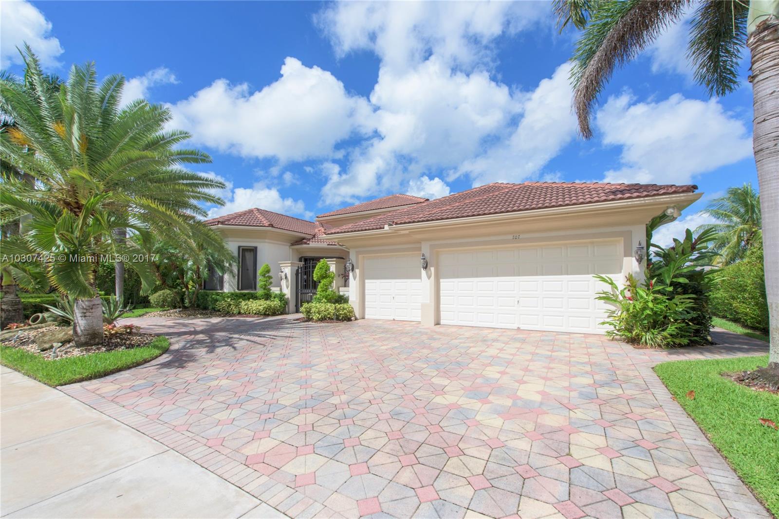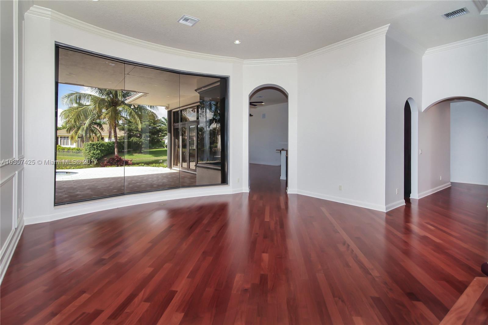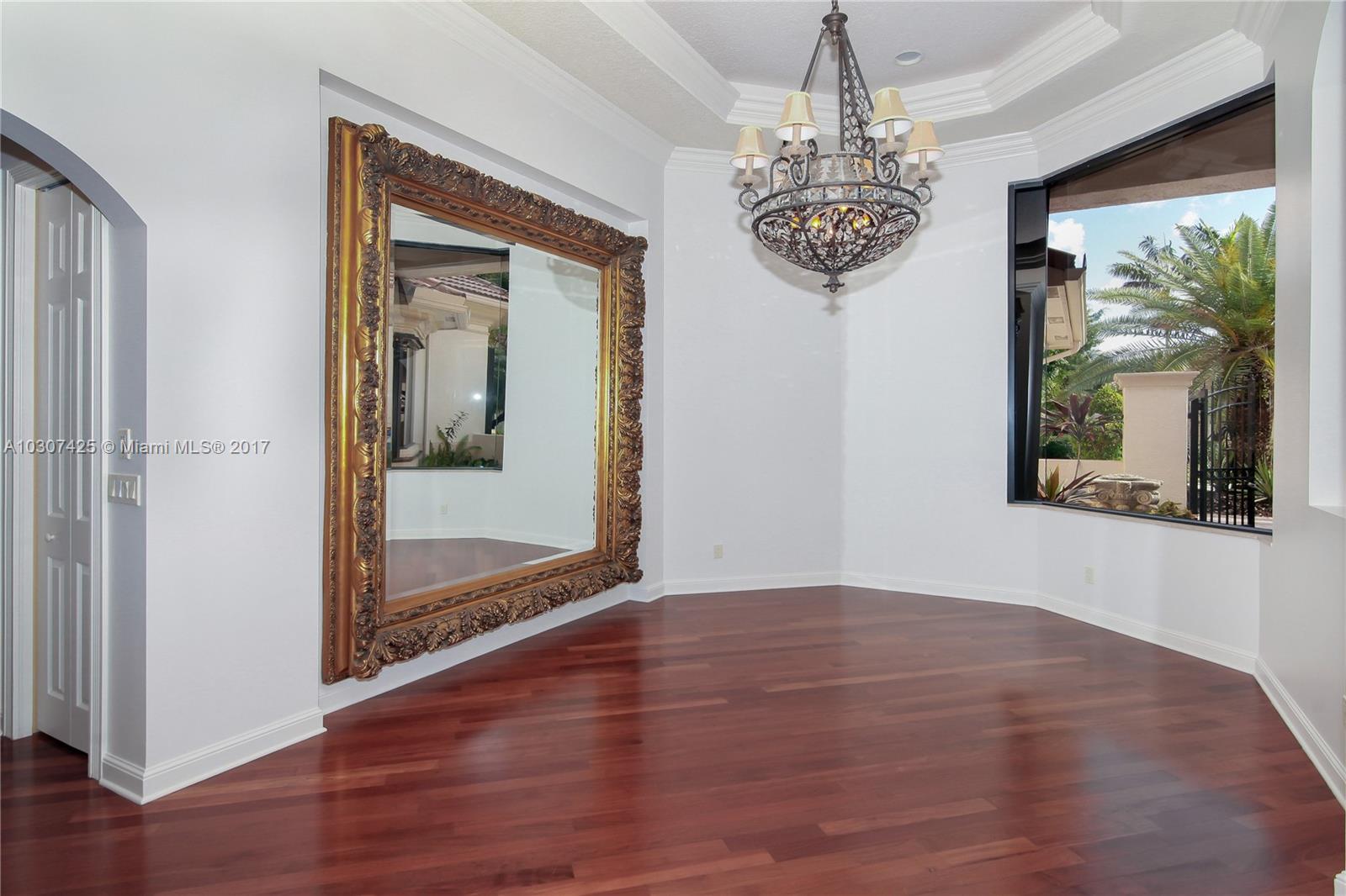 Elegance abounds in this stunning residence that ftures 4bdrms, 3.5bths plus office*Gated courtyard entry opens to stunning double glass doors*Gleaming wood floors are featured throughout all the main living areas, office & master suite*High volume ceilings & large spans of glass make this an open & airy floorplan*Enjoy the chefs kitchen while viewing the beautiful water views & pool*Designer wall unit in library with built in book shelves & double sided desk*Marble master bath, large patio & heatd pool & spa open to water & fountain views.