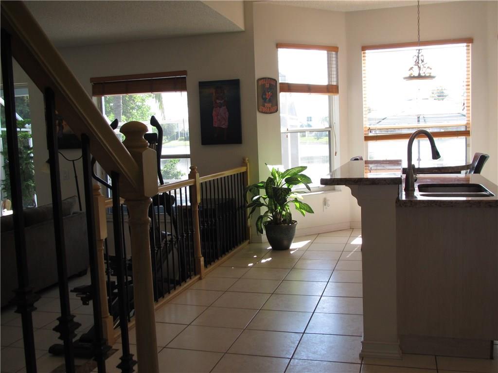 Incredible Lakefront four bedroom home. Volume ceilings throughout main floor-wonderful views from the kitchen and family room- one bedroom and bathroom downstairs. Spacious rooms. Screened patio off the family room. Master bedroom with sitting area and two master bathrooms and closet space with French doors out to the balcony for tranquil views. Two other bedrooms upstairs with Jack and Jill bathroom. Community pool and play ground and outdoor exercise area. Guard Gated. Do not delay - call today