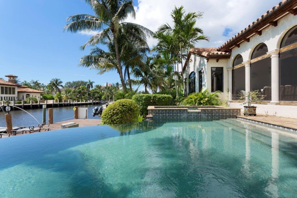 Colonial Mediterranean style designed by architect Robert Tuthill that was built in 2005. 3 bedroom plus office/den, 4 Full baths. Located high on the ridge with fabulous views of waterfront w/75' WF and dock. Gorgeous heated infinity pool and spa. Full house generator. Hardwood floors throughout. Large gourmet kitchen with gas cooktop and large island overlooking great room. Keystone fireplace. All en suite bedrooms. Impact windows & doors. Chicago brick driveway and walkway that leads to pool and dock.