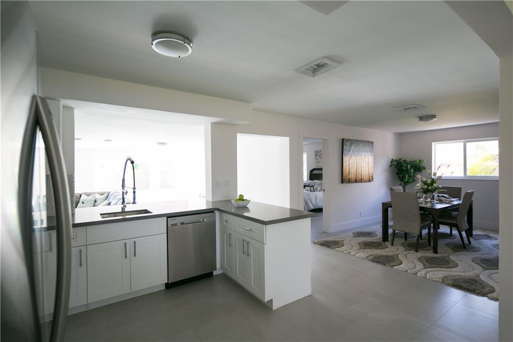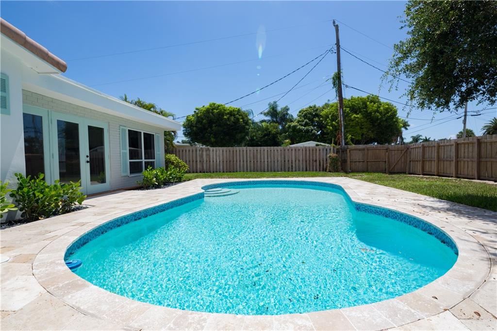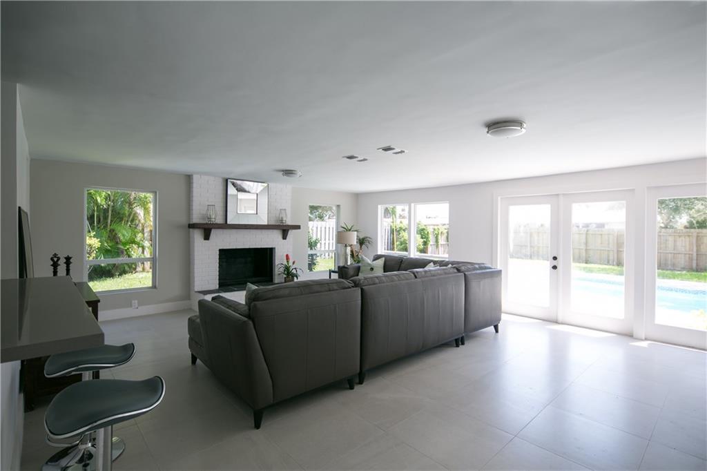 Newly rebuilt 4/2 in SE Pompano. Floor plan flows seamlessly w/stunning gray porcelain tile throughout. Open kitchen w/Quartz counters, Samsung stainless appliances & breakfast bar. Split master suite for privacy. Gorgeous spa like baths. Huge 21'x20' family room w/fire place & French doors. Extra deep & fenced backyard. Travertine pool deck, new landscaping & South exposure is ideal for entertaining. Impact windows & doors. Close to beach, I95, schools & shops. Who will be first to call this home!?