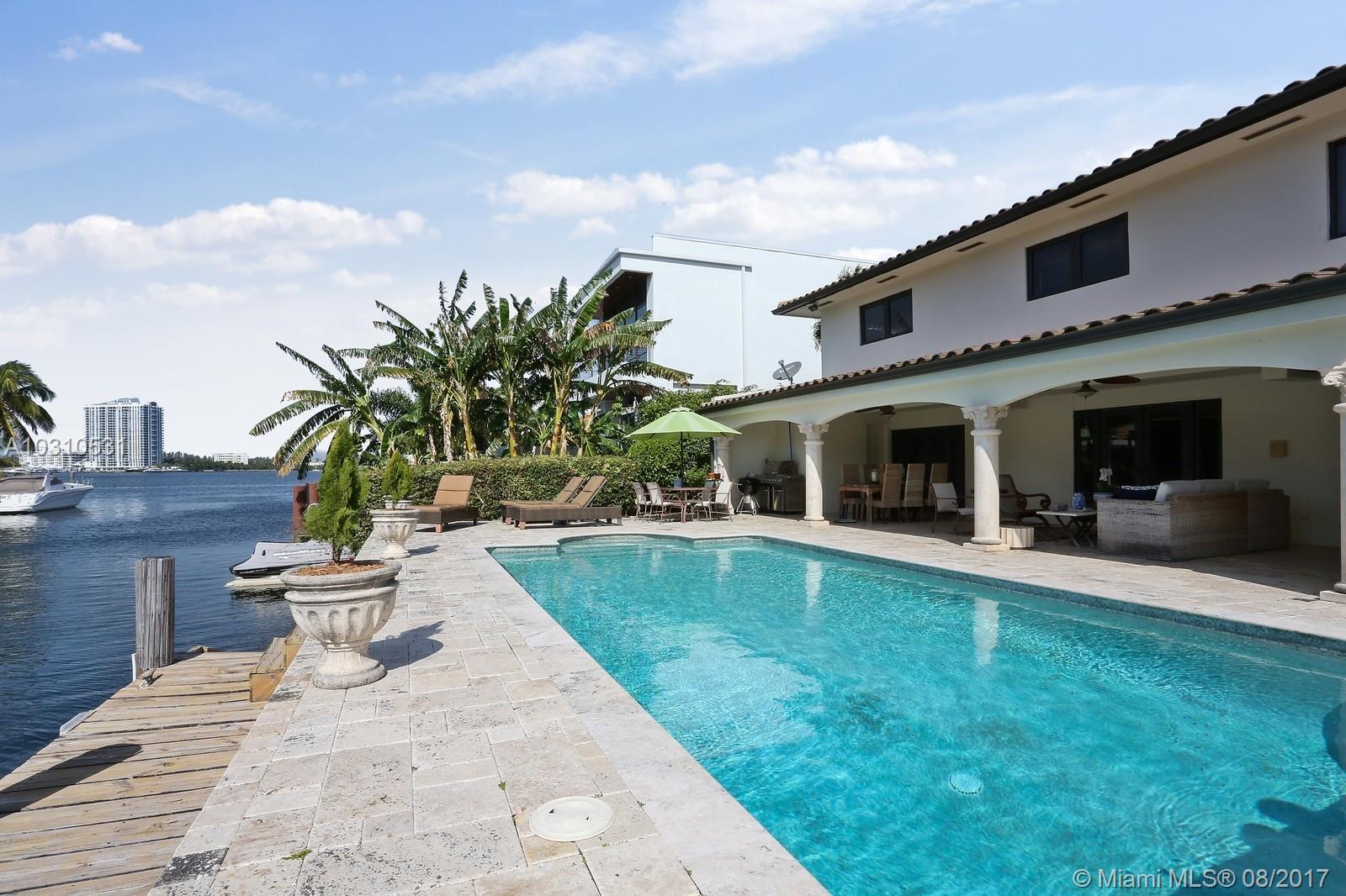 Waterfront Tuscan-like villa built with comfort, space and entertaining (formal and informal) in mind. The large kitchen with adjacent family room opens outdoors to bring the outside in, along with easy pass though from kitchen for barbecues by the pool. The expansive covered outdoor patio with full cabana bath makes a perfect place to relax, dine, or just enjoy the breeze. This residence has a wonderful floor plan with 4 bedrooms upstairs and 1 down, Master suite with terrace to enjoy the sunsets, enormous formal living room, and elegant formal dining room. Great curb appeal with a gated circular driveway plus an oversized 2 car garage. All windows and doors are hurricane impact resistant including garage. 80' on water with private dock & unrestricted ocean access. Easy to show.