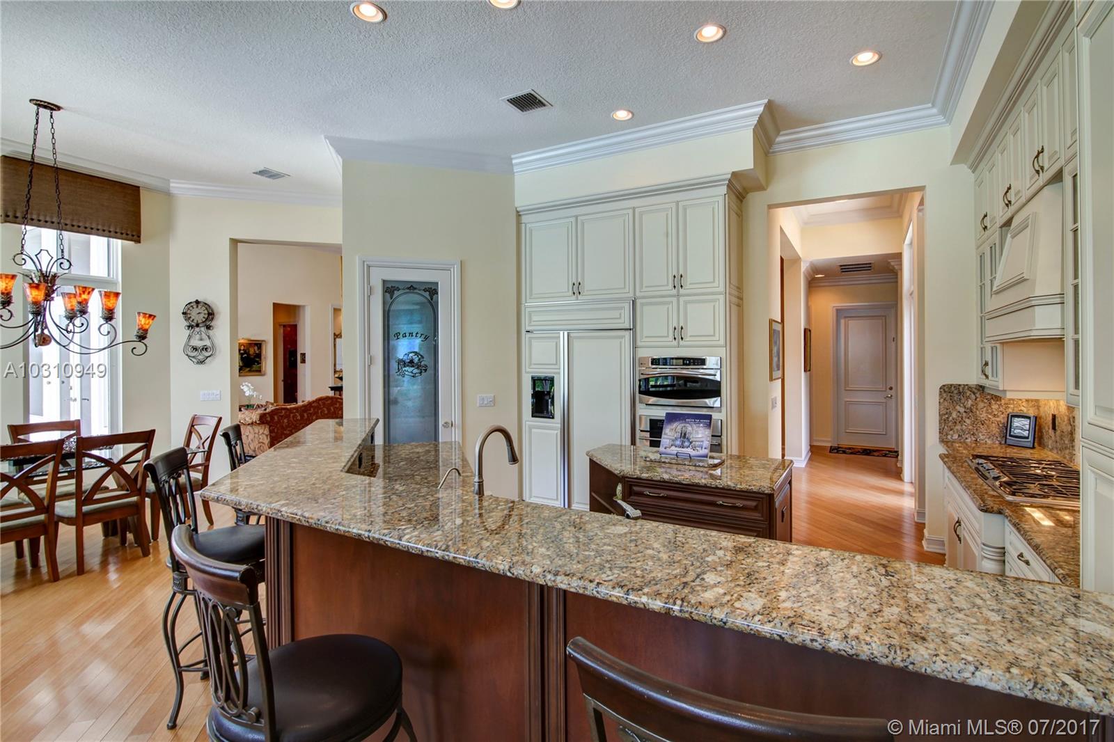 What makes this classic and modern “ONE OF A KIND” home so special and different from others?Giving its residents an opportunity to enjoy breathtaking water vws or relaxing sounds of lighted fountains & beautiful sunsets from its over 18,00 sq.ft. property.Custom 1 story estate featres 5bd/4.5bths plus private library & side entry 3cg.Chefs ktchn w/6 burner Thermador cook top,island & breakfast bar.Entertain under the 2 covered lanais w/wood ceilings & large summer kitchen equipped w/sink, refrig. & gas grill.Heated salt water pool & spa w/4 fountains & large patios.French drs encompass the formal dining rm.All impact glass,solid drs,custom library & family rm entertainment center plus 3 new a/c’s.A sophisticated retreat that reflects the merging of inspiration and architecture!