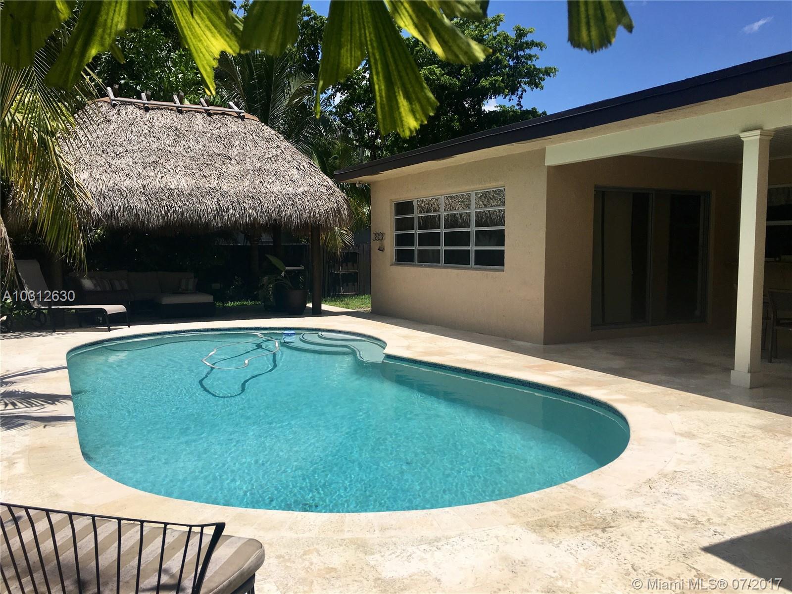 New to the market this 3 bedroom, 2 bathrooms renovated elegant home sits on an 8,566 s/f corner lot fully fenced with updated landscaping, a stunning new front double door and a two car garage. It also has a large laundry/mud room with access through the garage. The kitchen has stainless steel appliances and granite counter top. The back patio offers an updated pool and covered patio with surrounding travertine tiles and a large tropical tiki hut for family gatherings. The pool area has convenient access to an interior bathroom. The home was built in 1978 and recently renovated, it contains 1,674s/f and it is located in a desirable Pembroke Pines neighborhood with “A” rated elementary and middle school; the high school has an excellent sports program with a winning tradition.