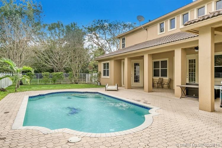 You'll love this gorgeous 2-story home, corner lot, located in the desirable ISLES AT WESTON, Resort style community with A+ school system.The open entry level and main floor flows with beautiful hardwood floors, and elegant high ceilings, connecting the living room area and the formal dining room. Continue into the grand Chef’s kitchen, featuring SS appliances, custom cabinets, and granite counter tops, separate Breakfast area, laundry room and Family Room. The spacious, main-level includes a huge master bedroom with 2 large Californian walk-in closets and a luxurious bathroom. Head upstairs to find 5 additional bedrooms, 3 full bathrooms, and a large recreation room. The large backyard is an entertainer’s delight with its cover patio and free style pool. PRICE REDUCTION FOR QUICK SALE!