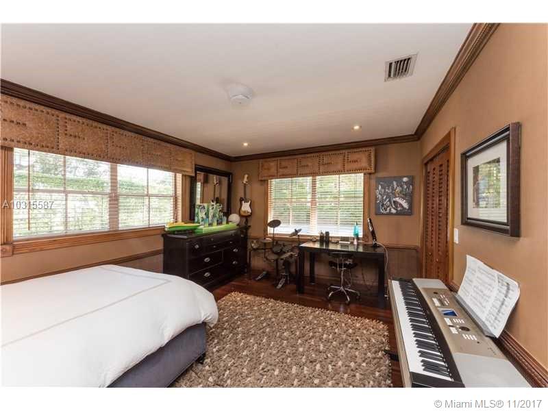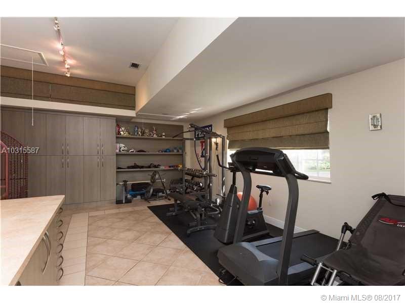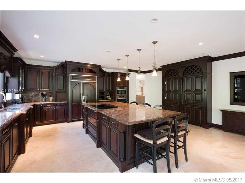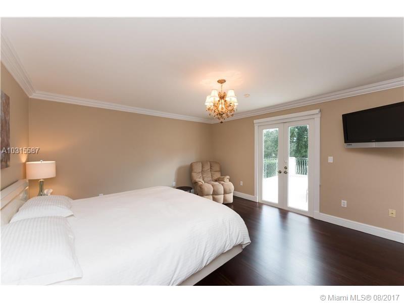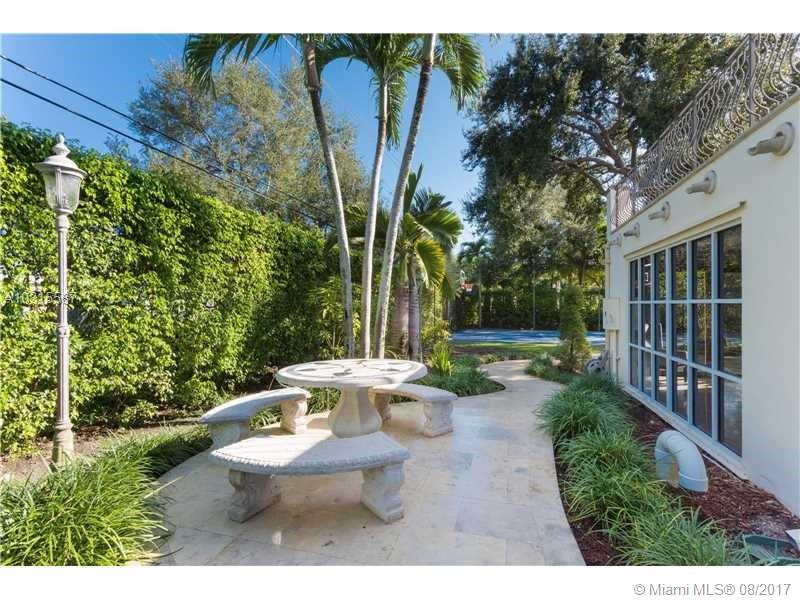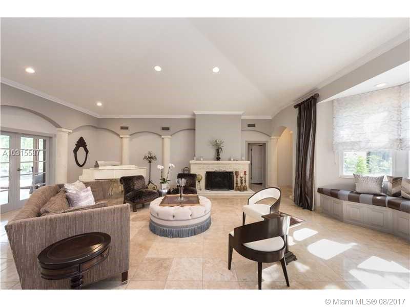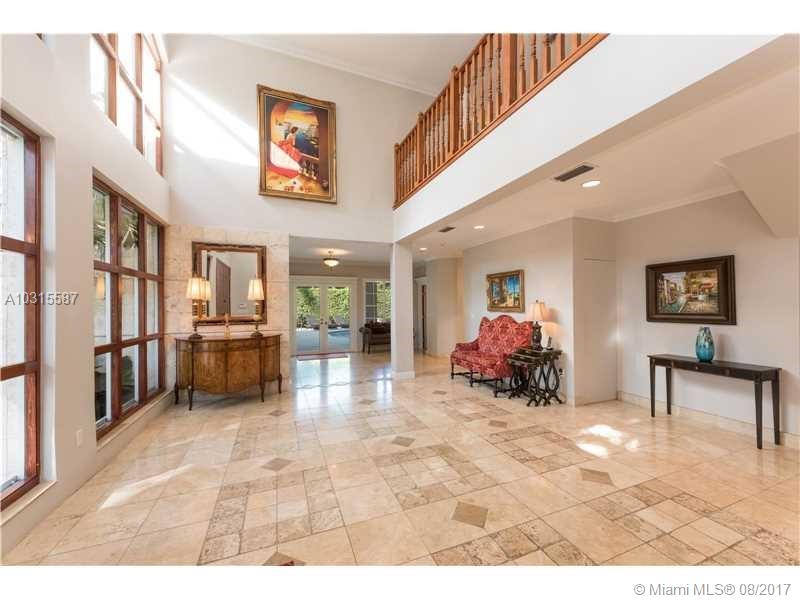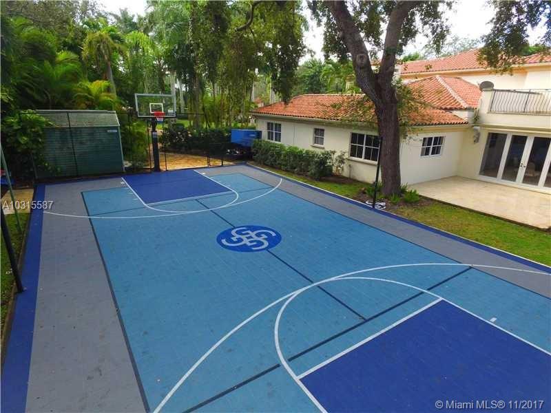 Beautiful finishes and prime location on gated acre in north Pinecrest. This 2 story 6BR/5.5BA home includes library, bar, gym & 4 car garage. Lofty ceilings shed abundant light throughout the home. Marble & wood flooring. Enormous Chef's kitchen overlooks resort style pool, Jacuzzi & lighted sports court. Elegantly appointed Master suite. Fireplace, generator & more. Lushly landscaped on very quiet street.