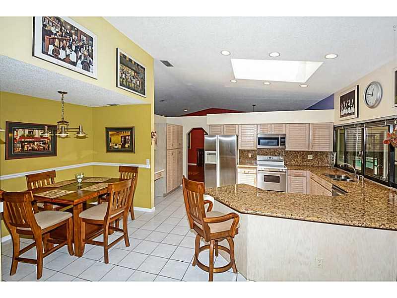 GREAT VALUE IN JACARANDA LAKES! 4 BEDROOM 2 BATH WITH POOL ON A CORNER LAKE LOT! GRANITE COUNTERTOPS, BREAKFAST BAR, AND OPEN BRIGHT DESIGN IN THE KITCHEN! HAS UPDATED GUEST BATHROOM, LARGE ROOMS, AND IMPACT WINDOWS!!! 2006 ROOF WITH SKYLIGHTS, EXPANSIVE PATIO AND POOL AREA ON THE LAKE! GREAT NEIGHBORHOOD WITH LOW HOA!