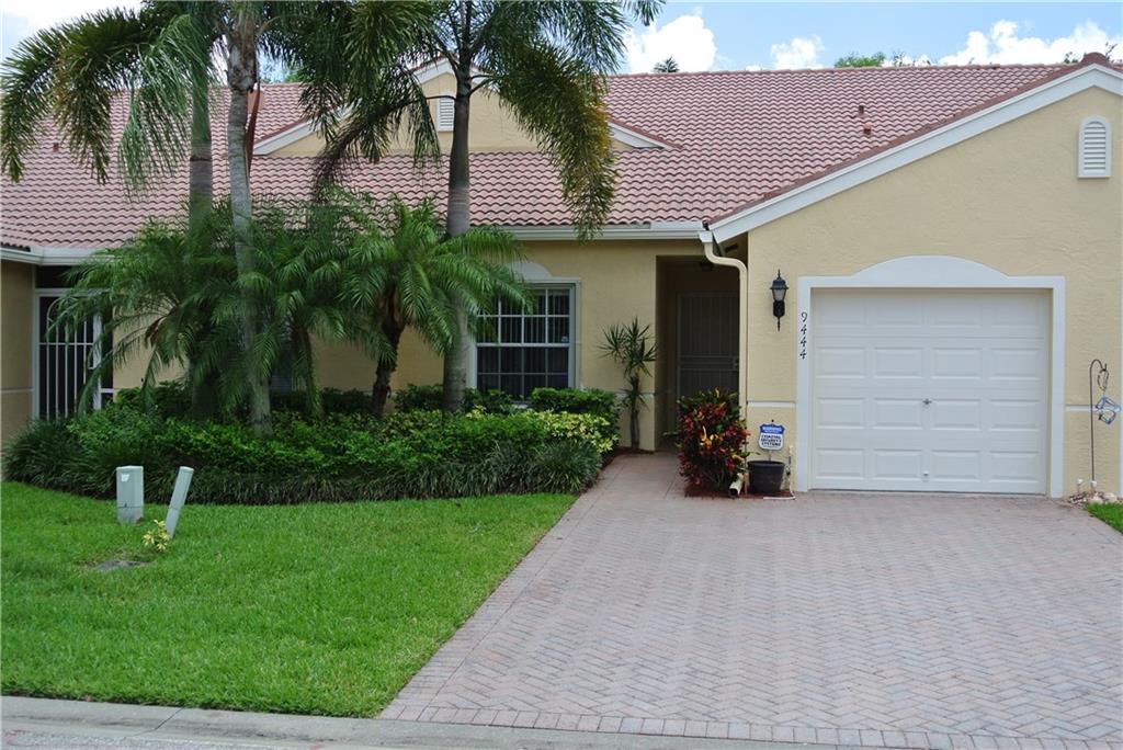 Beautiful one story villa. This villa is nice and spacious with vaulted ceilings throughout. Nice open kitchen layout perfect for entertaining guests. Large master bathroom with vaulted ceilings. Screened in patio. One car garage. AC replaced in 2013, UV Light. New hot water heater 2017. Gated community 55+ with beautiful resort style clubhouse and resort style large pool with hot tub. Community is very active and provides many activities for its residents. Gated manned security with waterfall entry.