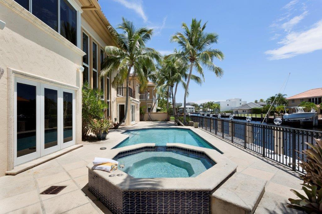 Located in the prestigious gated community of Bay Colony. This Mediterranean inspired 5 bedroom, 6.2 bath estate is 3 lots from the point & offers 100' deep water dockage. Grand Foyer enters into an impressive open living area with volume ceilings. Kitchen offers granite counters, double wall ovens, wine cooler, gas range, 2 dishwashers. Large master suite includes dual walk in closets, jetted tub, separate water closets, elevator, media/theatre room, loft/office, generator, impact windows/doors,