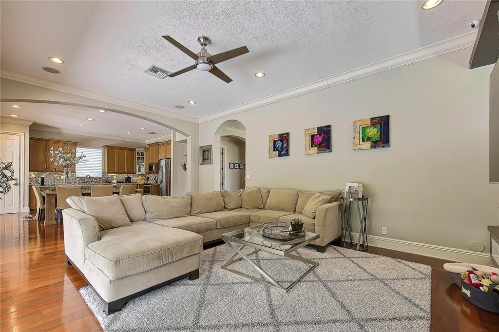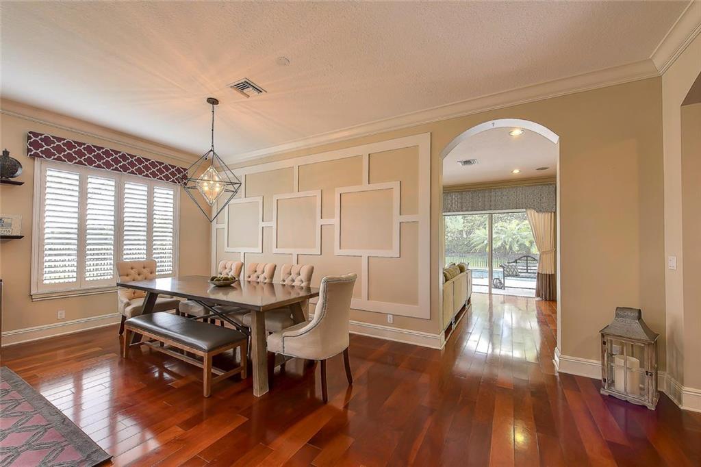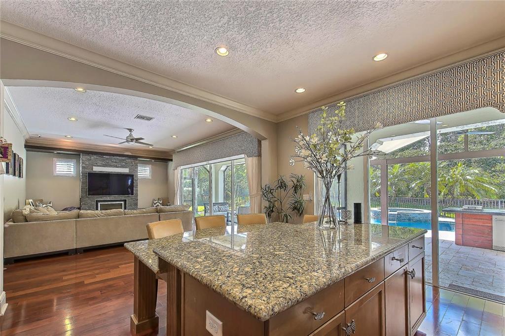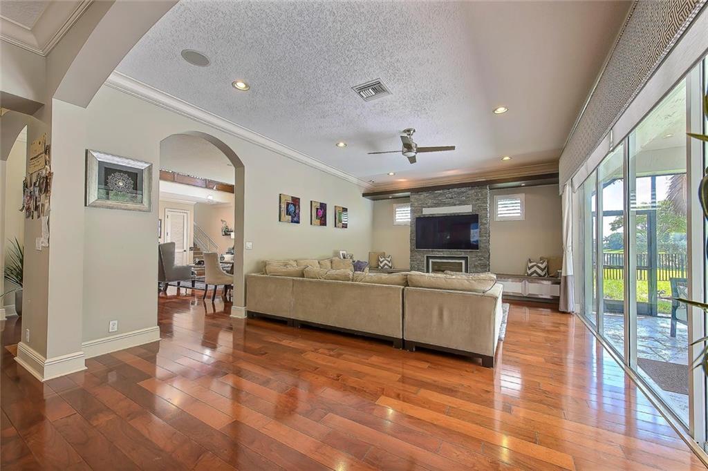 Beautiful lakeside home in quite Culda sac. Oversized pie lot with N/S exposure. Updated pool/ heated Jacuzzi with travertine marble, custom outdoor kitchen with 42" grill,built in ground propane tank, fridge, and LED lighting in house and on property. Interior has solid wood floors,Hunter Douglas treatments, plantation shutters and high end lighting.Smart home with sound,thermostats, and surveillance cameras. Garage remodeled with epoxy floor &cabinets. Exterior painted 2017. Full backyard reno in 2015.
