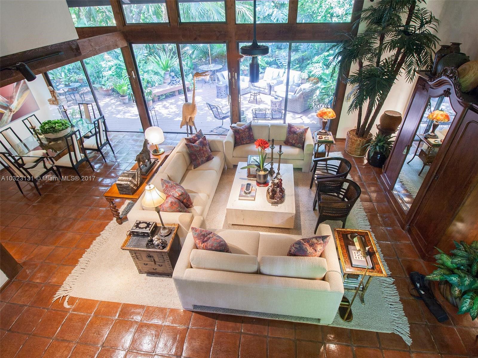 Live in a dream tree-house! There's nothing else like it! Private. Secure. Unique natural paradise in N. Pinecrest. Six homes on gated 3 acres architected by Charles Sieger share large pool and N-S lit tennis court. Original owner/community designer ready to sell! Amazing builder's model boasts 24' soaring ceilings w/tongue & groove exposed natural wood. Post & beam construction w/CBS walls. New roof. Open floor plan w/unique lofted spaces makes this home perfect for entertaining. Mexican tile mix w/wood & carpeting. Master suite located downstairs with lofted study, huge walk-in closet & cavernous master bathroom w/skylight. Other two BRs on separate loft space w/family room. Gorgeous back patio area w/lush tropical plantings on largest lot backs to quiet acre estates. Modernize to taste.