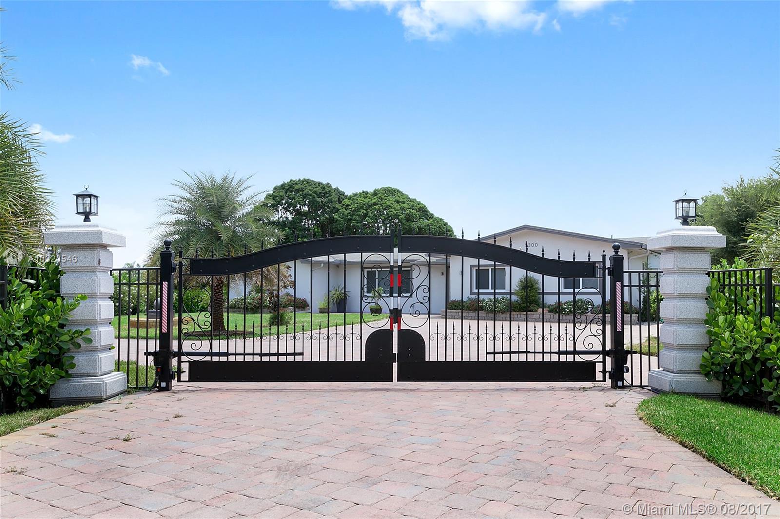 Enter through custom gates and drive up to this recently remodeled and renovated one story home set on one acre lot, lushly landscaped and fully fenced for maximum privacy. Heated pool and spa, spacious travertine patio, children's playground and 46x30 outbuilding complete the backyard. Interior boasts tastefully updated kitchen with wood cabinets, tile backsplash, granite counter tops, wall oven, convection microwave and wine cooler, updated bathrooms, 24 inch neutral throughout, contemporary fixtures and motorized window treatments. Separate children's wing has two bedrooms plus a bonus room. Additional features are laundry room with front loader washer and dryer, security system with cameras and impact windows and doors. Come enjoy the serene country lifestyle of Southwest Ranches!