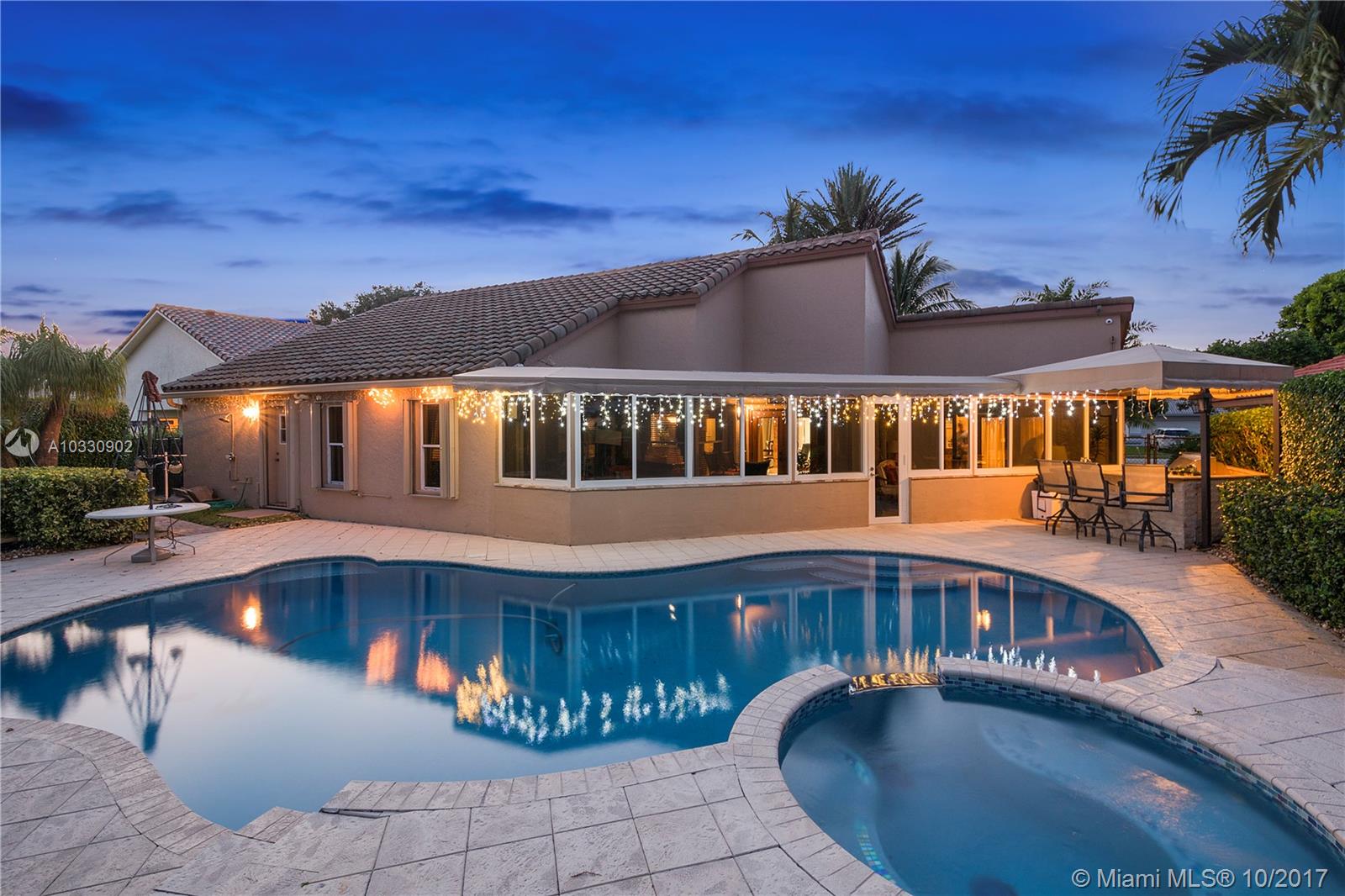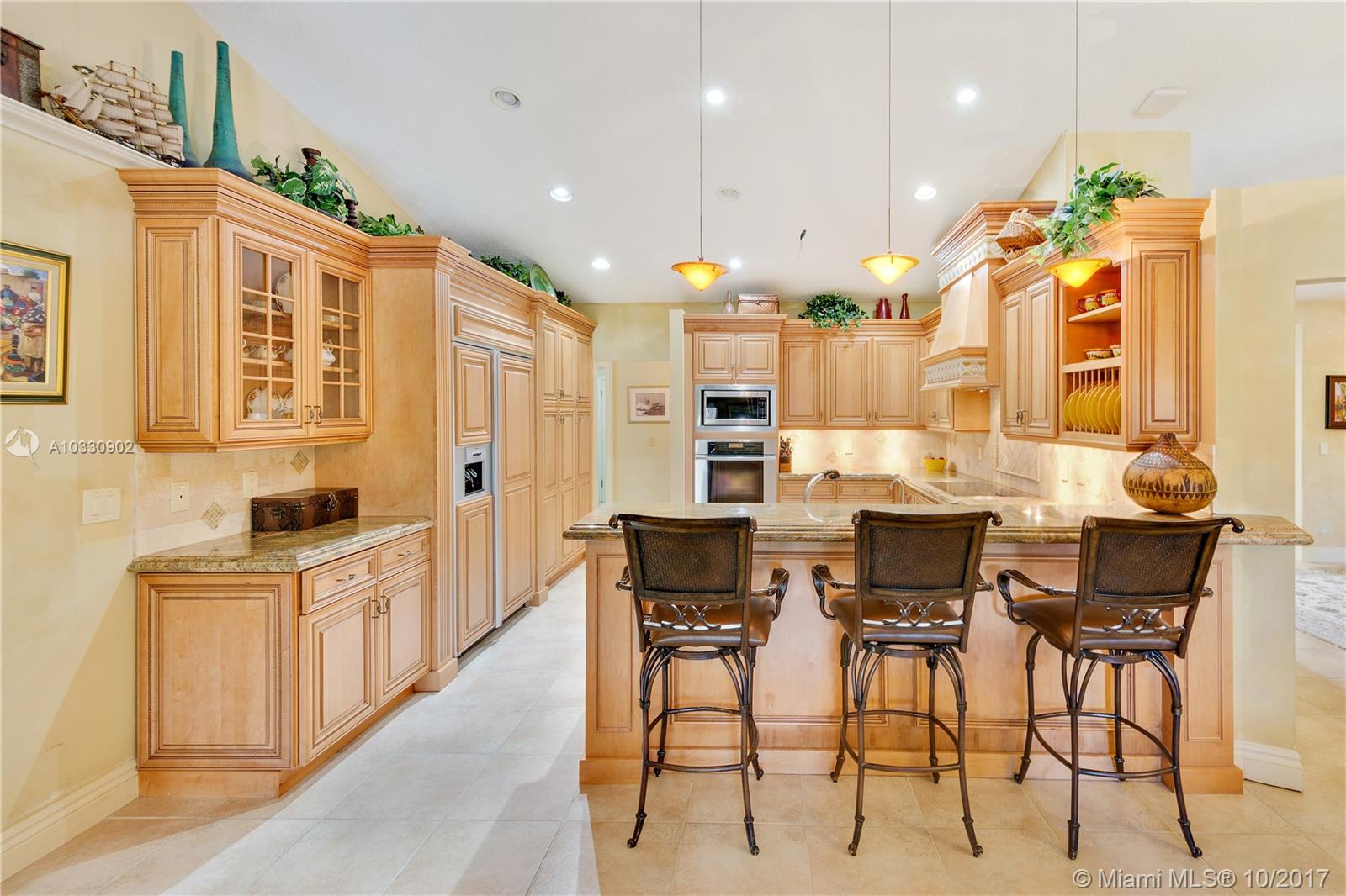 Beautiful 5-Bedroom Pool Home in Highly Desirable Forest Ridge, Davie. Gorgeous Lake Views. Excellent Schools. Custom Upgrades Throughout! This Home is Perfect for a Growing Family and/or Entertaining. Gorgeous Backyard has been Professionally Landscaped. Large Patio and Custom Covered Outdoor Grill. Updated Pool with New Tile, New Diamond Brite, Salt Chlorination System, and Remote Control. Enlarged Covered Patio Upgraded with French Doors. Coffered Ceiling and Marble Floors in Master Bedroom. Marble Floors, Double Vanities, Separate Shower and Jacuzzi Tub in Master Bathroom. Kitchen Updated with Wood Cabinets, Granite Counter tops, Top-of-the-line Appliances and Reverse Osmosis Filter System. High Ceilings in Living Areas. Home Water Softening System. Newer Roof and A/C. Call Now!