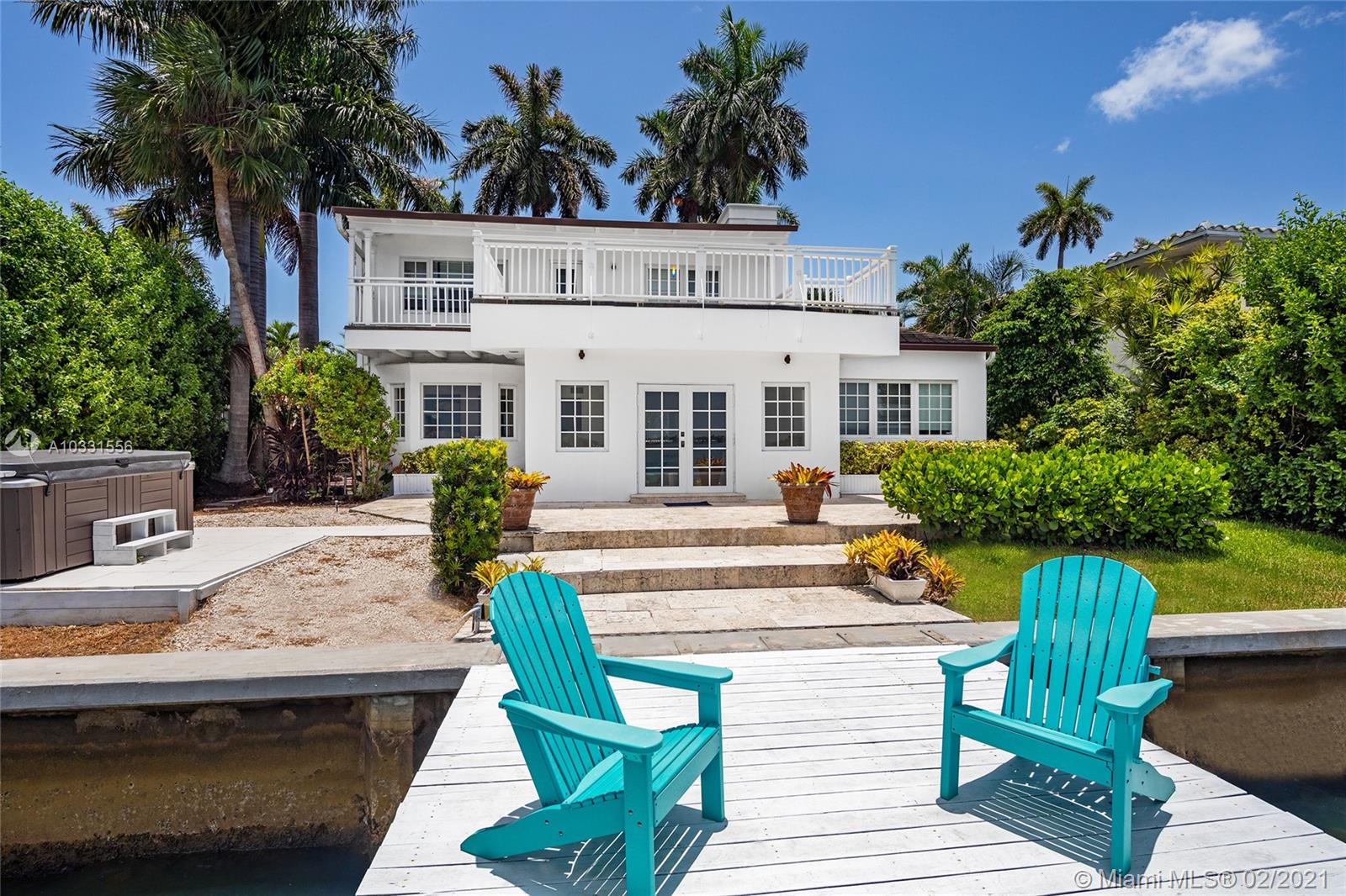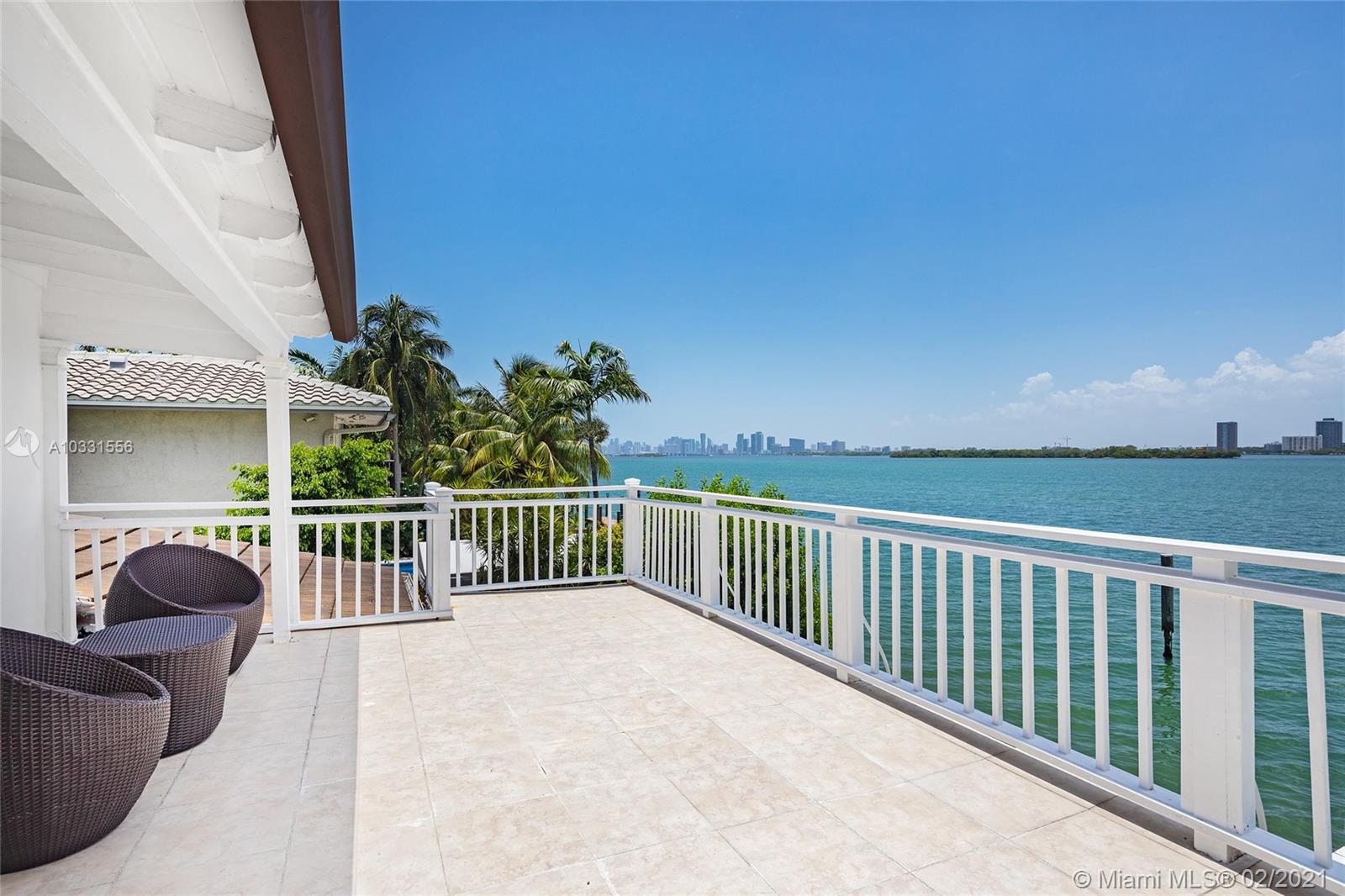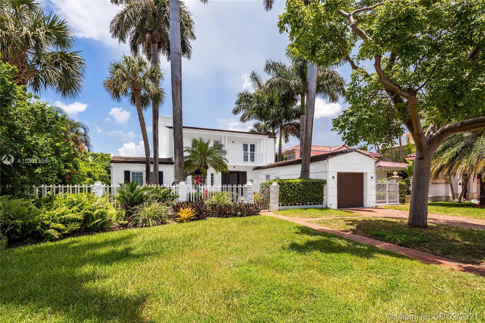 Modern elegance meets Old World Florida charm in this Key West style waterfront home on the guard gated North Bay Island in North Bay Village. Enjoy wide bay & beautiful downtown Miami skyline views and magnificent sunsets streaming across the water. Built in 1940 the 2 story home features hardwood flooring thru out except the kitchen. There are 3 bedrooms 3 baths in the main house, one being situated on the first floor. Two other bedroom suites are located on the 2nd floor all with views to the water and an expansive terrace looking over the water and downtown Miami. There is a 4th bedroom guest suite on the side of the house with a private entrance. Boat dock and lift, hot tub spa in the backyard, room for a small pool, and manicured grounds.