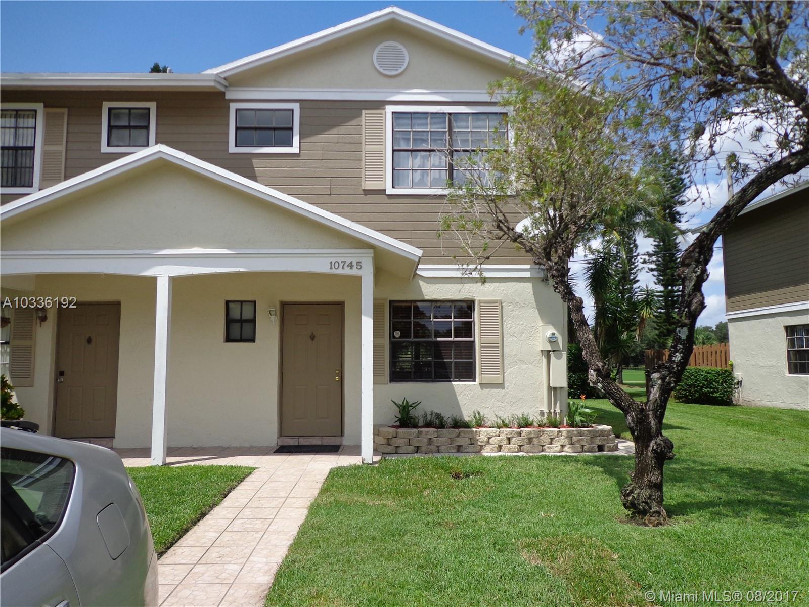 Corner 3/2.5 TH in Family community. Beautifully updated kitchen with granite. Golf, water view, French Door, well maintained. ASIS. Tiled 1st fl,master Walk in closet. Extra storage. NO LEASING FOR 3 YEARS $240/month maintenance covers exterior ins, roof repair, basic HD cable, community pool Near Pembroke Lakes Mall, CBSmith and Brian Piccolo Parks, Hospitals, Drs, Turnpike, I-75. Walking distance to bus Routes, restaurants, & shops.