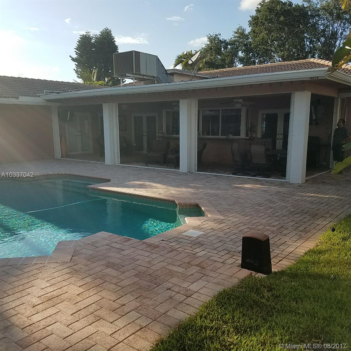 Beautiful 3 bedrooms, 2 bathrooms, re-designed Hollywood Hills Residence. Featuring hardwood floors throughout the house; remodeled kitchen with granite countertop, stainless steel appliances, pantry and a pass-thru windows. Formal living and Dinning room, Family room, Cabana bath, Foyer. French doors leading to 40' long covered sun-porch; 30 Ft. long pool with spa and paved deck; two car garage, barrel roof, circular paved driveway, in-house laundry room and so much more.