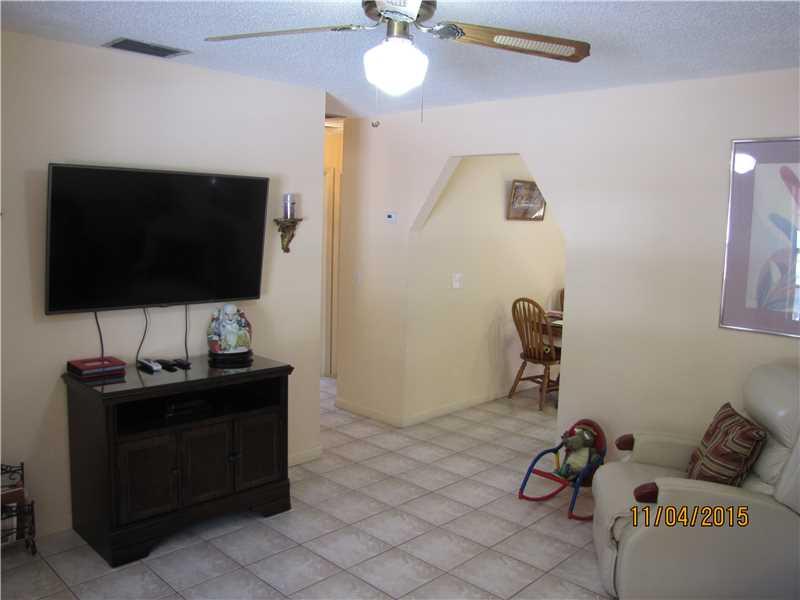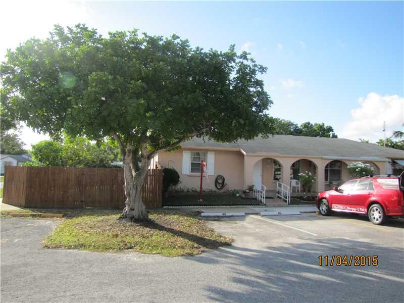 Very well maintained 2 bedrooms, 1 bathroom, single story, Big corner lot twinhome in a quiet community. Ceramic tile floors thru-out, spacious rooms, hurricane shutters, sprinkler system, terrace & big fenced back yard, parking spaces in front of the pro perty! Cul-De-Sac Street! Great Location, Close to shopping centers & restaurants! Ready to Move-In!!
