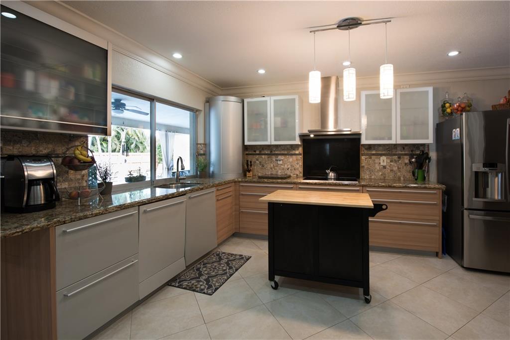 Totally remodeled 4/2.5 pool home w/ bonus room! Can be office or den. Beautiful updated granite kitchen & baths. Circular driveway & two car garage. Double door front entry w/ large interior foyer. Brand new A/C. Spacious covered patio overlooking the pool area w/ kitchen pass-thru & 2 cabana baths. Fenced yard. Outdoor shower. Separate laundry room.Walk-in closet in hallway for additional storage. 16x16 diagonal tile throughout. Crown molding. Close to schools, shops & restaurants. Don't miss this!
