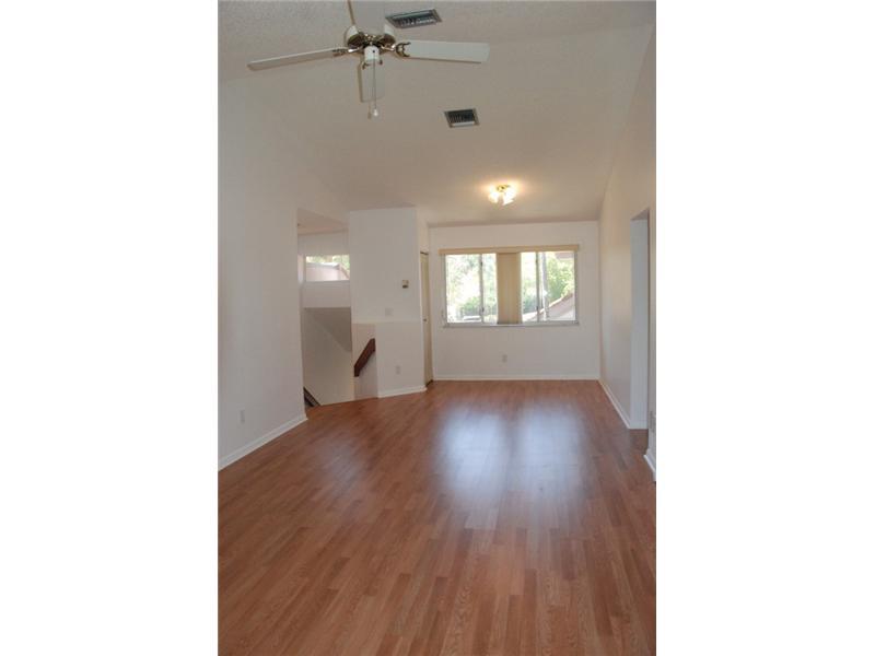 A beautiful 1/1 with garage nested in the heart of Plantation. Brand new laminate floors throughout, new paint, great view. 2 story unit but 1 story living on the 2nd floor with vaulted ceilings. Lots of light, very spacious. Large master bedroom, large w alk-in closet plus a double closet. Bathroom is spacious with a round tub. Kitchen has an ample breakfast area. Very long driveway. A very cosy neighborhood with lots of vegetation. Located close to many shops, restaurants, services and access to the 595.