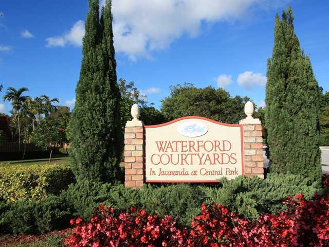 Beautifully maintained - move in ready! 2 bed/2.5 bath corner townhouse. Brand new stainless steel appliances, full washer & dryer, newer high efficiency A/C, central vacuum, accordian hurricane shutters, sliding doors to private courtyard, large bedrooms with large closets and balconies, double sinks in master bath. Roof replaced 8 years ago. Maintenance includes insurance. Walk to community pool & parks. All ages, pets welcome. Prestegious Jacaranda Central Park community. Not shortsale or foreclosure!