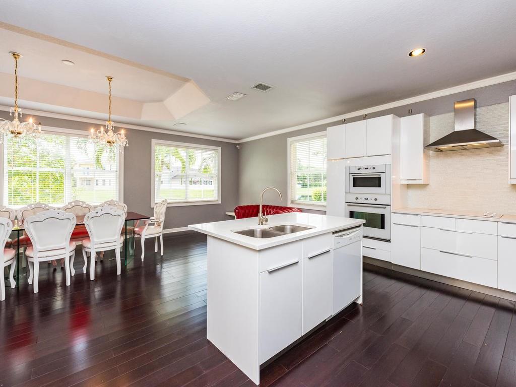 This beautiful lakefront home located in guard gated Nautica features a Grand Entrance with volume ceilings. Great floorplan. 2 split master bedrooms downstairs. Formal living/dining area leading to open kitchen & Island overlooking the family room. Spacious rooms surrounded by large windows allowing natural light. Plenty of closet space. Wood floors throughout. Carpets in bedrooms. 2 bedrooms upstairs plus loft that can be used as an office or 5th bedroom. Serene backyard on lake. Room for a pool.