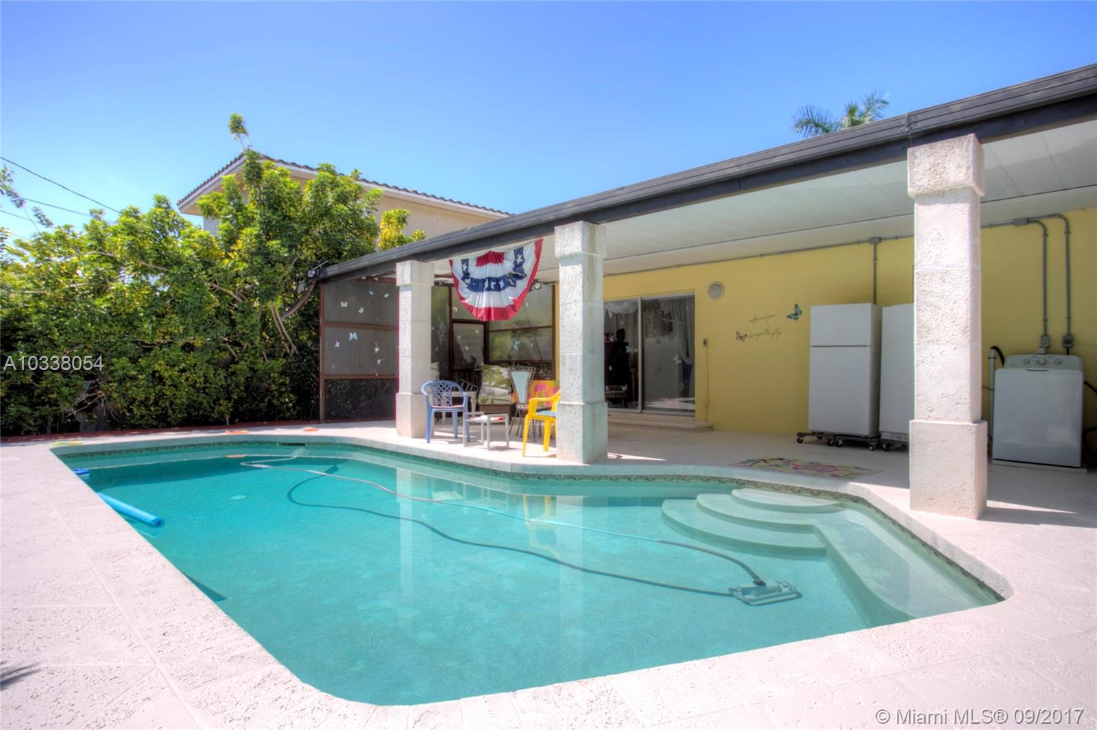 This 2/2 home is filled with charm and located in the heart of beautiful Hollywood Lakes. Owners have maintained it with utmost care. Property has hardwood floors in the living area and bedrooms, and Italian tile in the kitchen and Florida room. Home has a newer water heater, A/C and plumbing. Exit the back doors into your own pool oasis complete with travertine tile and covered patio. Own this gem in desirable Hollywood for under $400k!