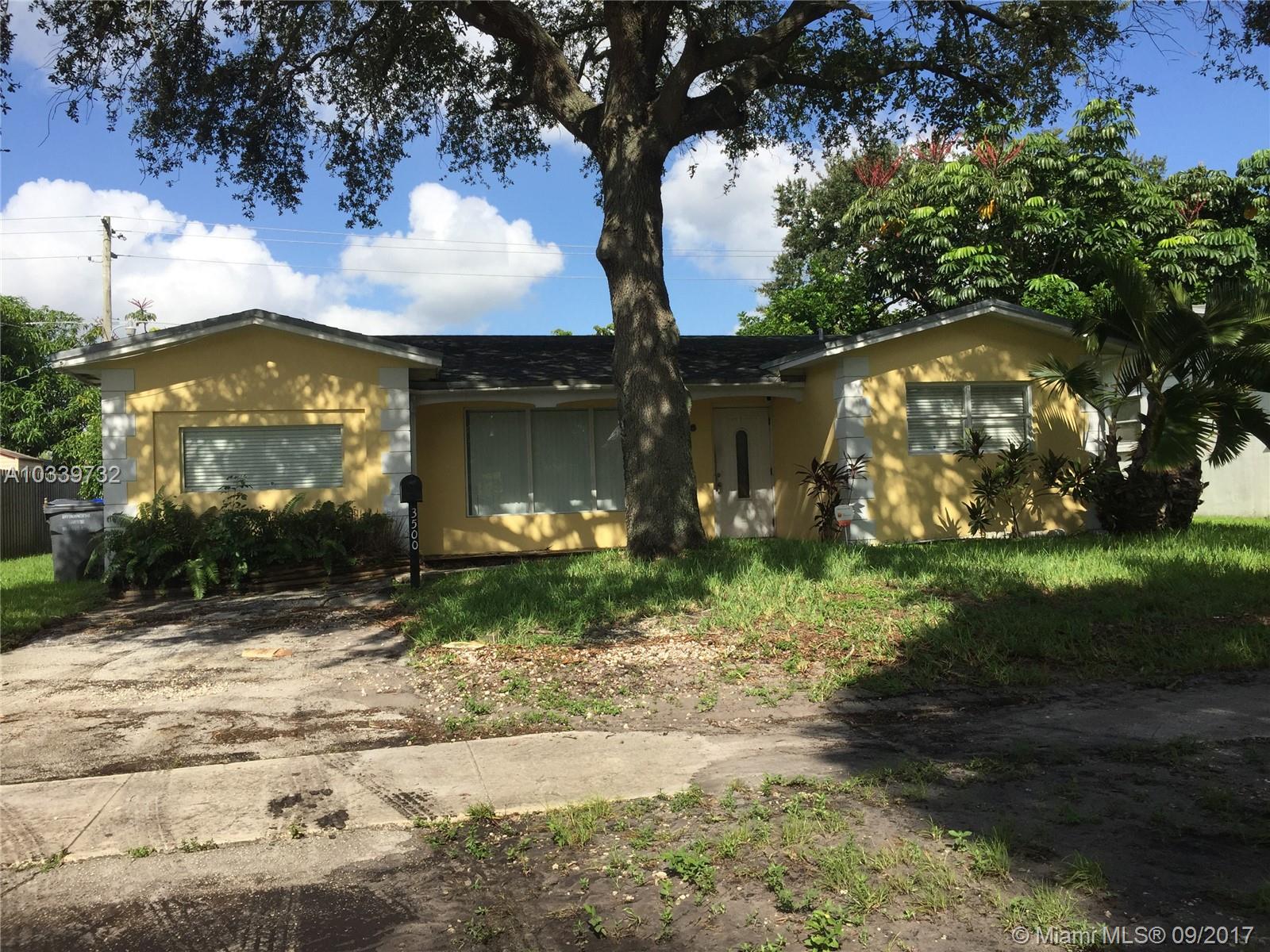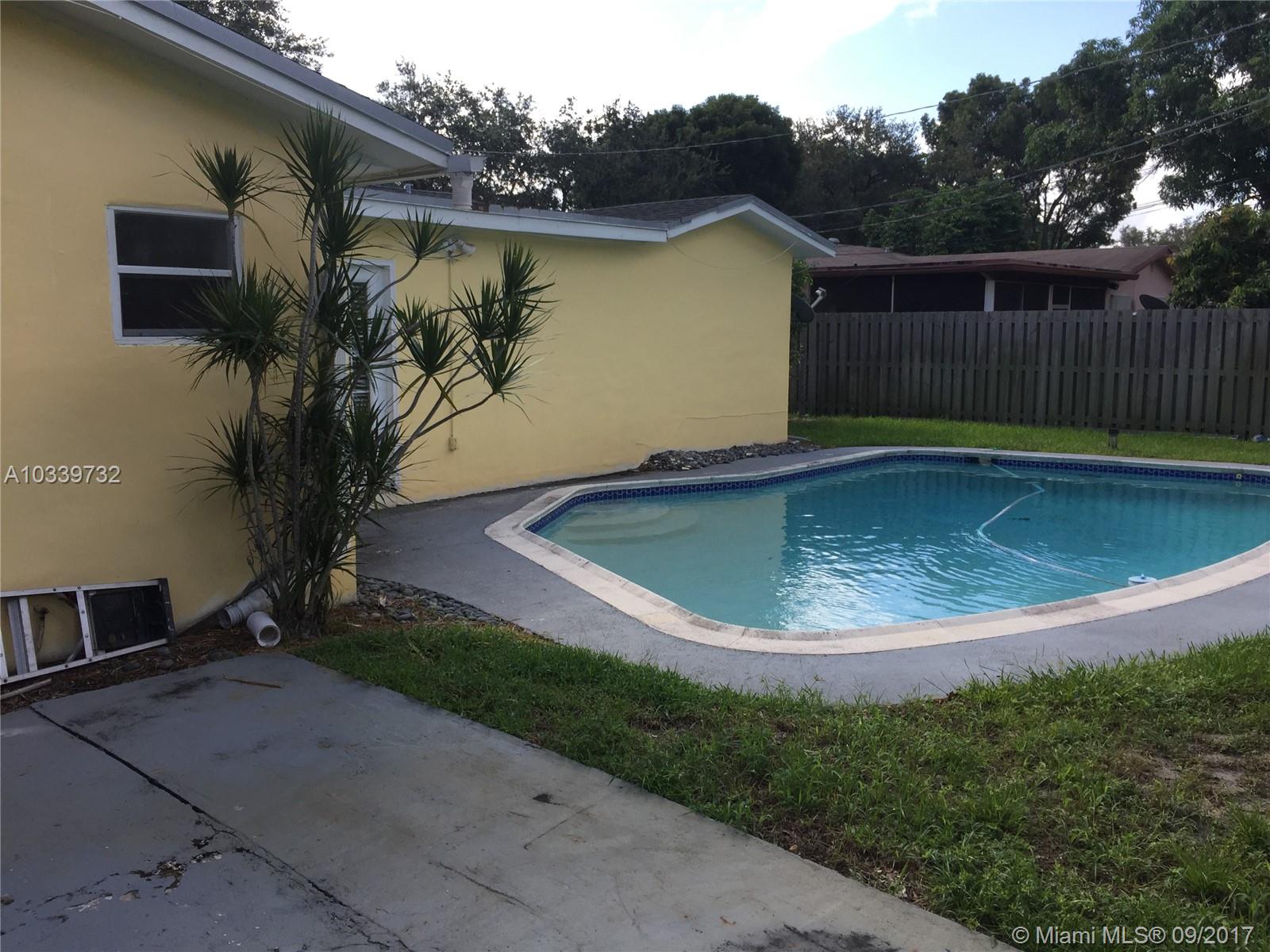 3/2 Pool home with great potential. The garage was converted by the previous owner to an office or gym, can also be used as 4th bedroom. Current owner has no documents of that conversion. Home offers great potential. Centrally located near shops and major highways minutes from the Beach, Fort Lauderdale Airport, Hard Rock, close to local colleges and universities, restaurants and hospitals for your convenience.