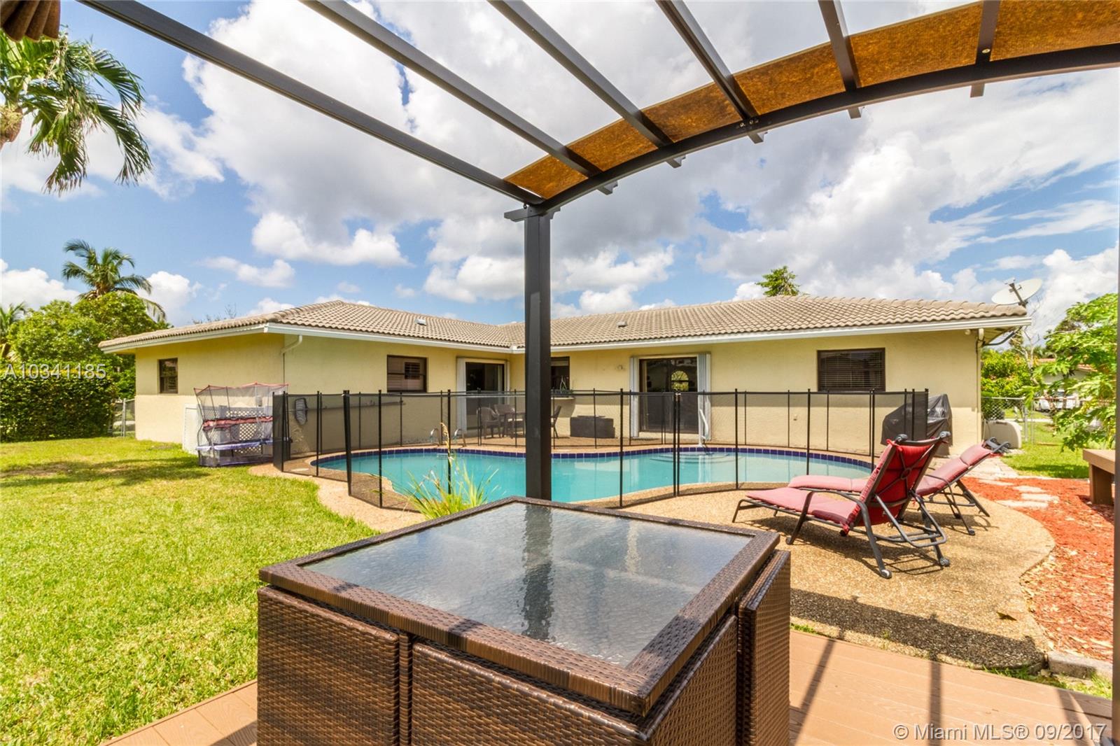 BEAUTIFULLY AND TOTALLY UPDATED SPACIOUS 2790 SQ.FT. POOL, CORNER HOUSE WITH HURRICANE IMPACT WINDOWS NO HOME OWNERS FEES MOVE IN READY. POOL WAS REPAVED WITH CHILD FENCE AND NEW PUMP. GREAT NEIGHBORHOOD WITH HIGHLY RATED SCHOOLS. CENTRALLY LOCATED TO THE SAWGRASS EXPRESSWAY AND SHOPPING AREAS. LARGE 2 CAR GARAGE WITH 4 CAR DRIVE WAY