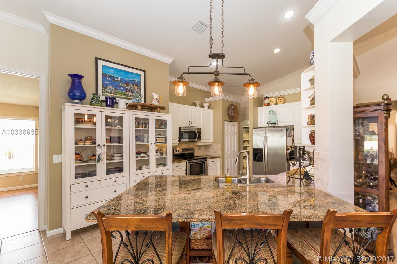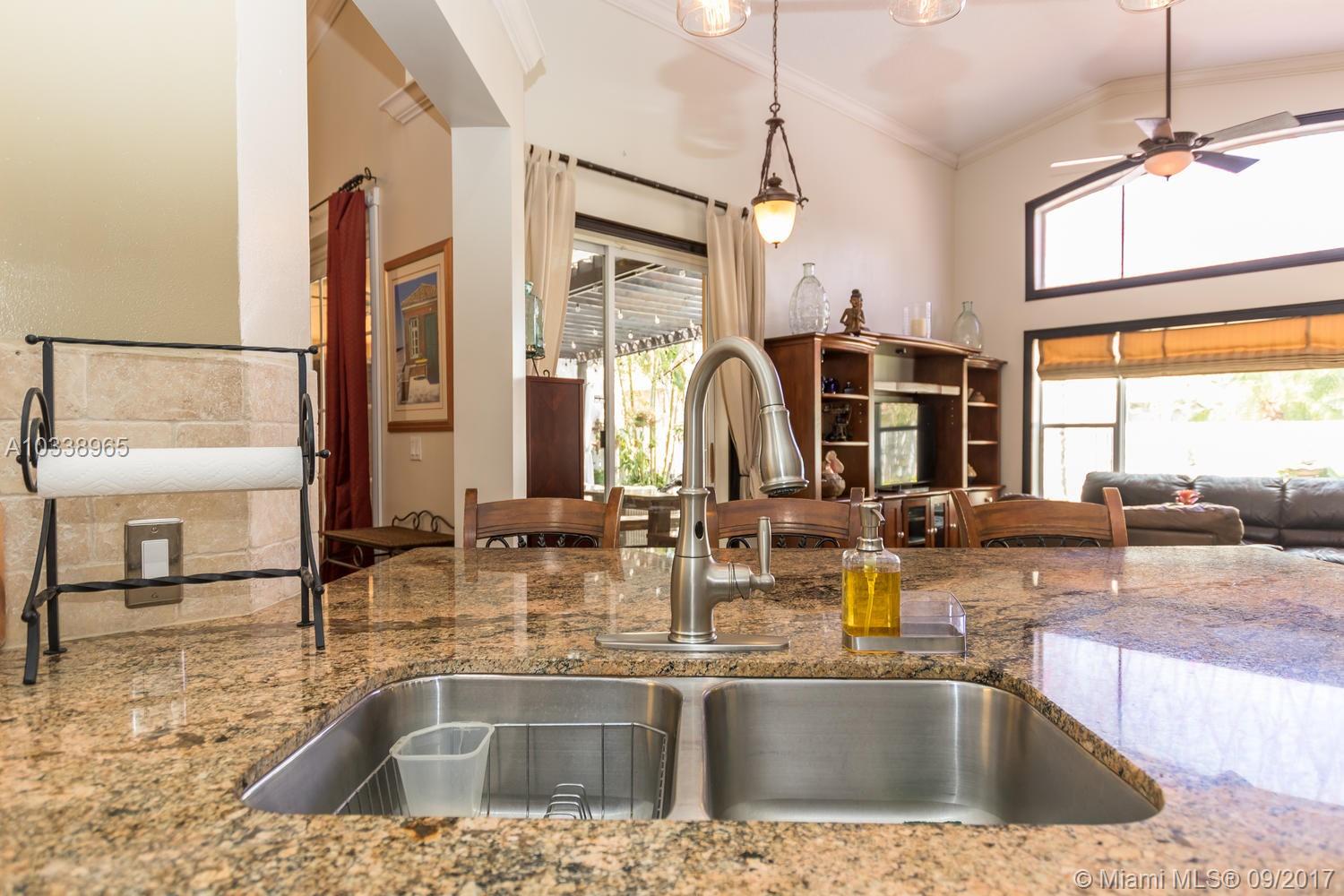 REDUCED! Fully updated home with 5 bed, 4 bath & 3 car garage. Beautiful 400 sq. Ft. covered travertine patio. Custom built in closets. Split bedroom plan. Large master suite has renovated en suite with jetted tub and huge shower, carrera marble counters and tile throughout, custom solid wood designer cabinets in his and hers walk in closets. Large open kitchen has huge custom built granite counter, tumbled marble back splash and stainless appliances. House is full of upgrades, French doors, custom molding, vaulted ceilings. Freshly painted in and out, new a/c unit and tank less water heater for energy efficiency. Beautifully landscaped tropical garden with orchids everywhere. Room for a pool. Association has huge resort style pool, kiddy pool, tennis, volley & basket ball, gym, party rm.