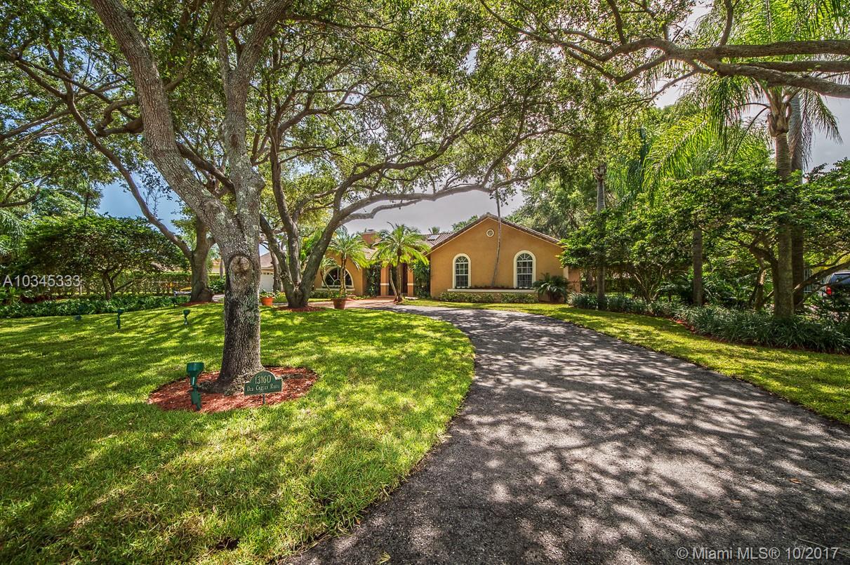 Hard to find expansive home in a small private community with an Old Cutler Road address. Renowned architect designed this meticulously maintained 5 bedroom, 4 bath home for current owner. Features include 10 and 12 foot wood ceilings, granite and wood kitchen, double sided fireplace, one split bedroom perfect for office or separate living, fantastic views from every room overlooking beautiful multilevel landscaped terrace with resort-like pool, Jacuzzi and grand oaks. X flood zone, all Palmetto Schools and Pinecrest Elementary. Come explore the opportunity to own in this enclave of only 4 properties.