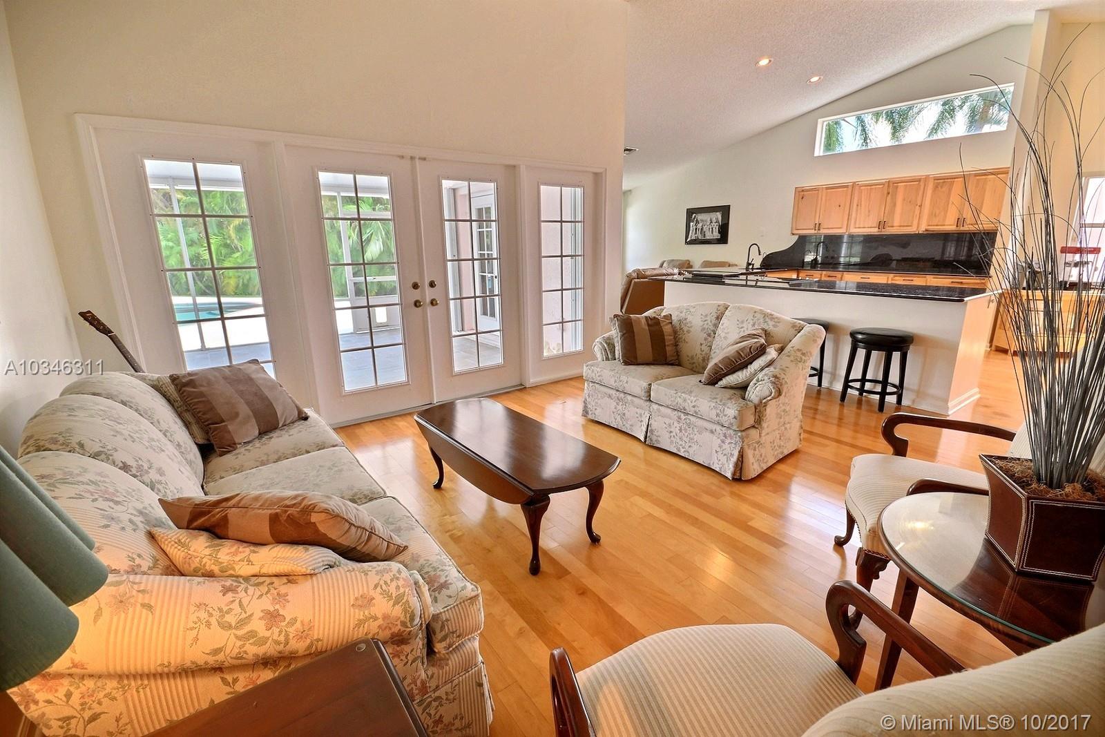 GORGEOUS, SPACIOUS WATERFRONT HOME ON GIANT 15,088 SQ FEET CUL DE SAC LOT W BRILLIANT POOL & LARGE DECK. MAIN HOME W 5 BEDROOMS, 3 FULL BATHS ON A SPLIT FLOOR PLAN, PLUS SEPARATE GUEST SUITE W 1 BED, 1 BATH & KITCHEN. AMAZING HOME FOR ENTERTAINING W BEAUTIFUL OPEN KITCHEN TO LIVING + FAMILY ROOMS PLUS COVERED & SCREENED PATIO ON FENCED YARD. HIGH CEILING, TONS OF NATURAL LIGHT, WOOD, MARBLE & TILE FLOORS (NO CARPET ANYWHERE). LUSCIOUS LANDSCAPED PROPERTY WITH IN GROUND TRAMPOLINE, ACCORDION HURRICANE SHUTTERS, LONG DRIVEWAY FITS MANY CARS.