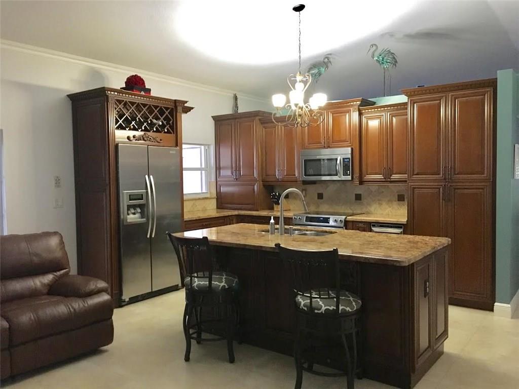 Completely redone, 3 bedroom, 2 bath, 24 inch tile flooring, oversized baseboards, crown molding, remodeled kitchen, granite counter tops, kitchen island, stainless steel appliances, redone bathrooms, master bath has a double sinks & double shower heads, walk-in closet, second bath has jet tub, plantation shutters throughout, accordion hurricane shutters, french doors leading out back, knockdown ceilings, entire inside recently painted, 14 foot ceilings, paver drive way and back patio.